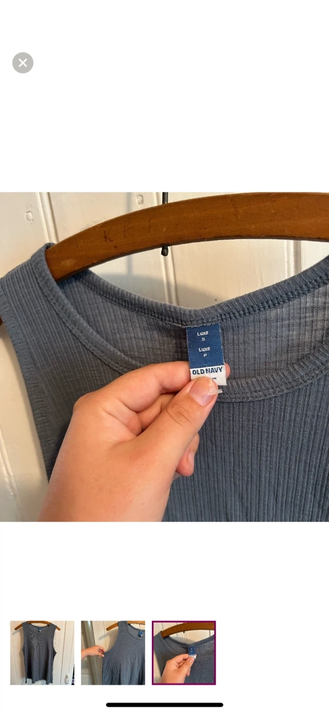 Old navy brand luxe line. Tank top. Blue ribbed. Size small. Brand new condition $10 Pickup Kincardine area or Peterborough but I can arrange delivery in port Elgin, walkerton-Durham, wingham-listowel-kw/cambridge/guelph, goderich-bayfield, & Arthur-Orangeville-Newmarket-Lindsay AREAS.