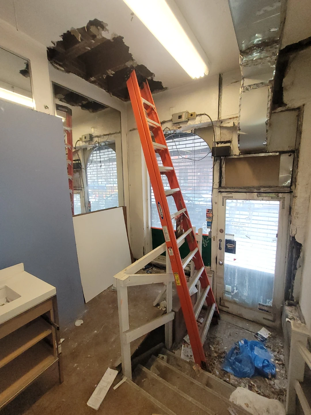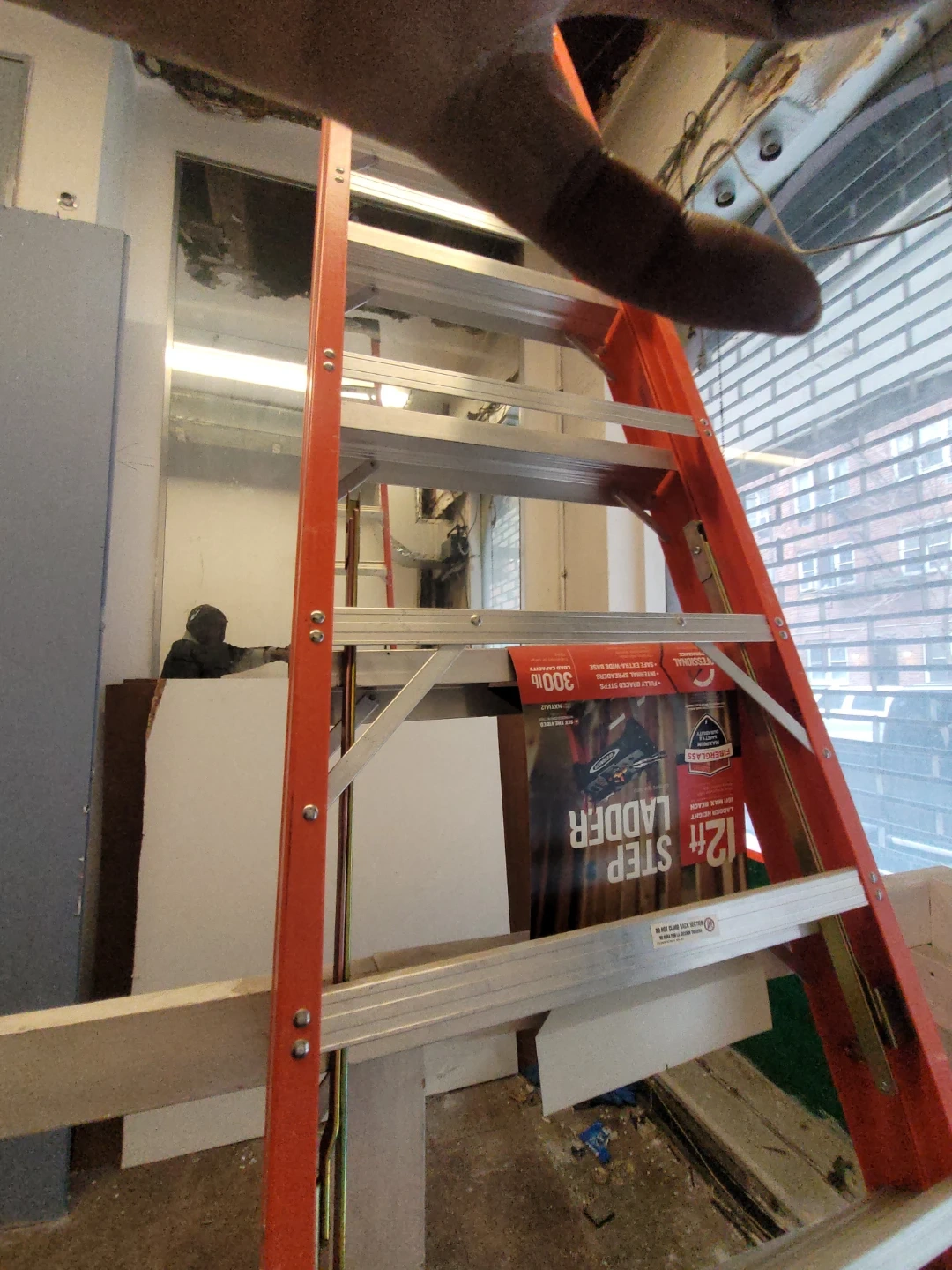 This is a 12 ft. Louisville Ladder. It's an orange fiberglass step ladder. It's built for a 300 lb. weight capacity.