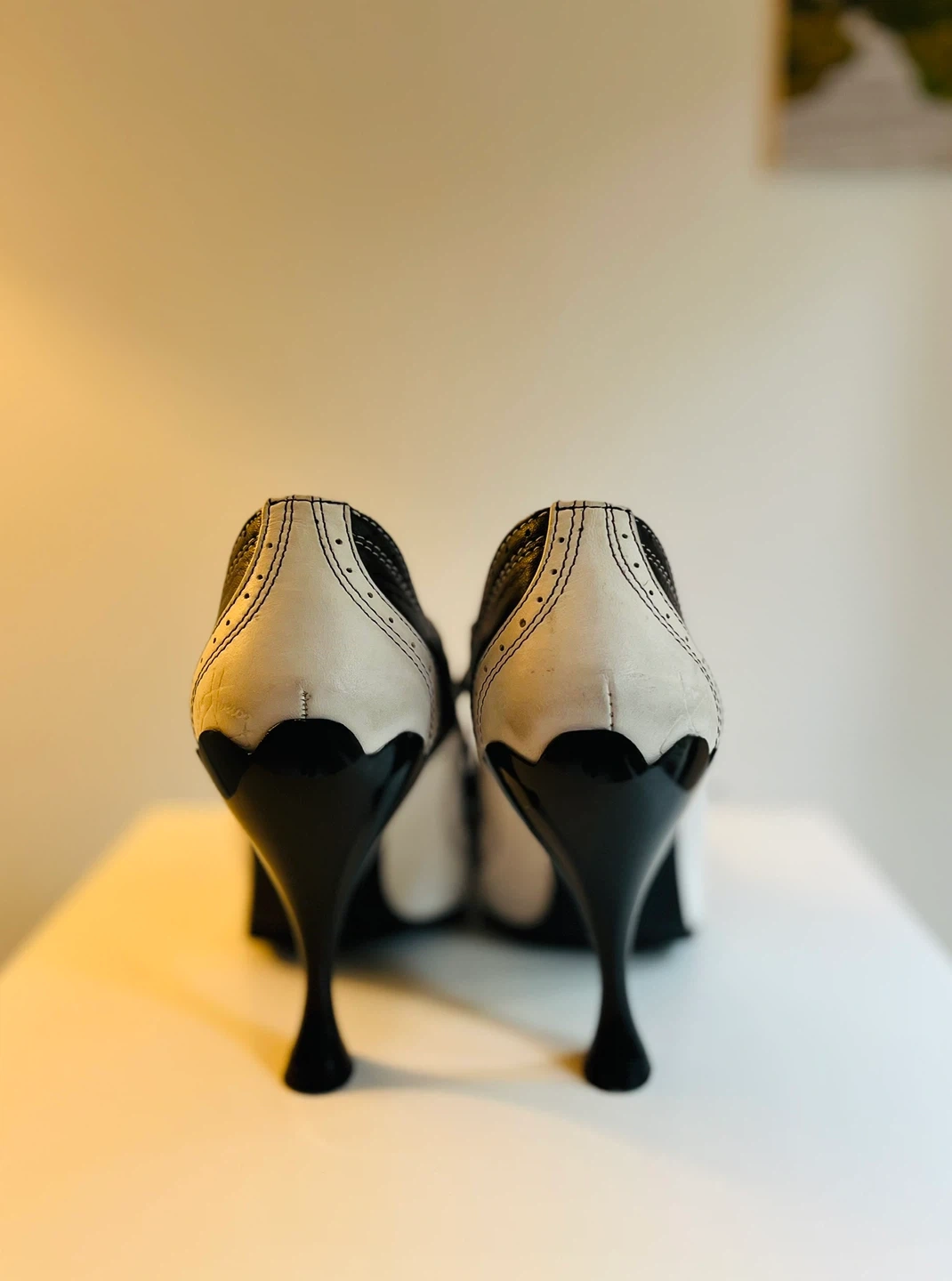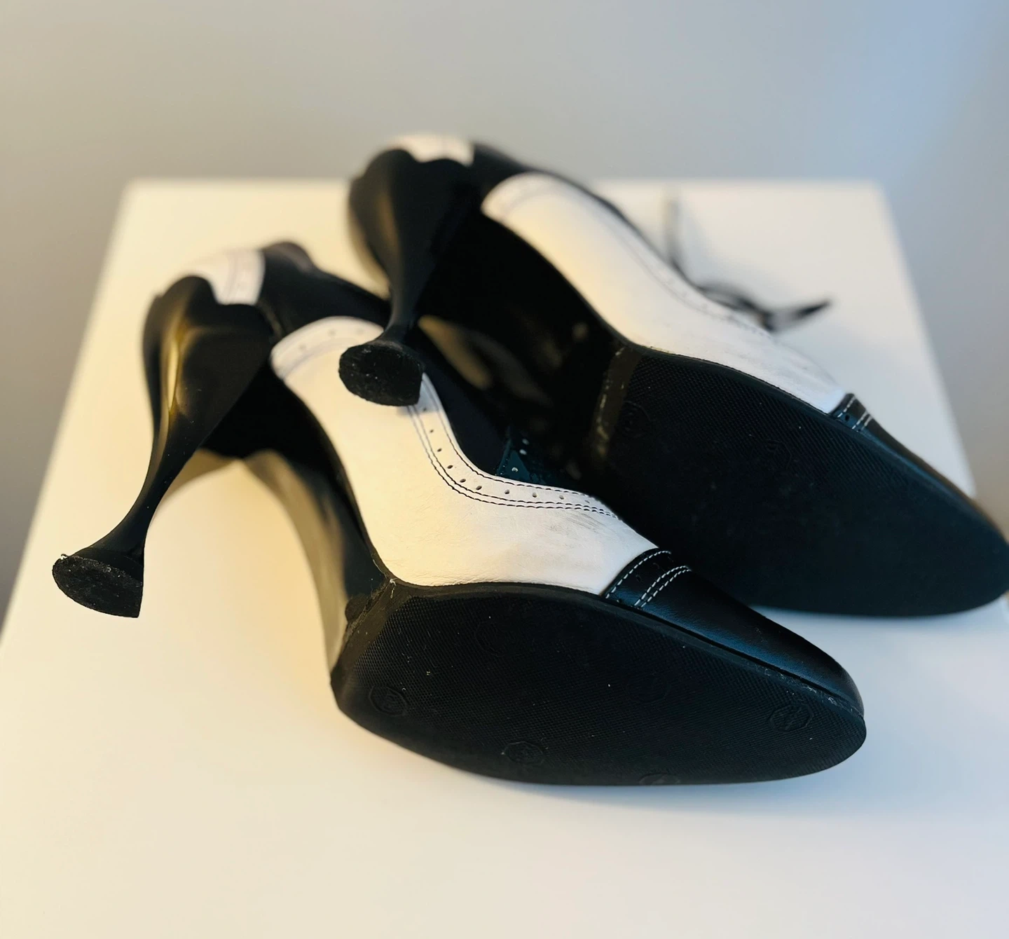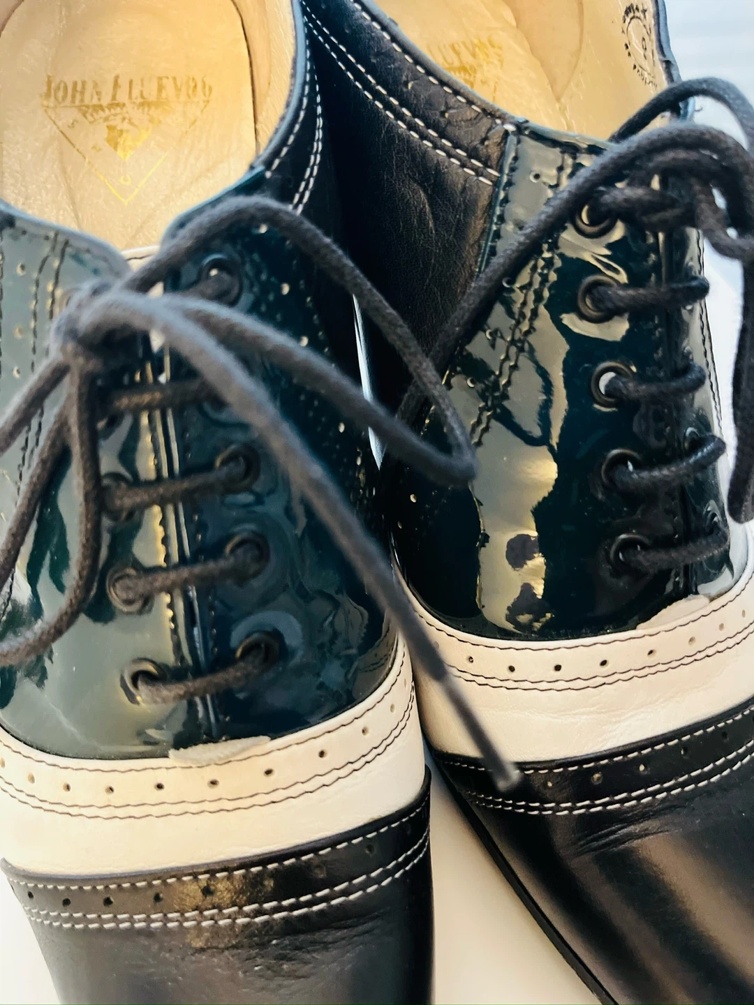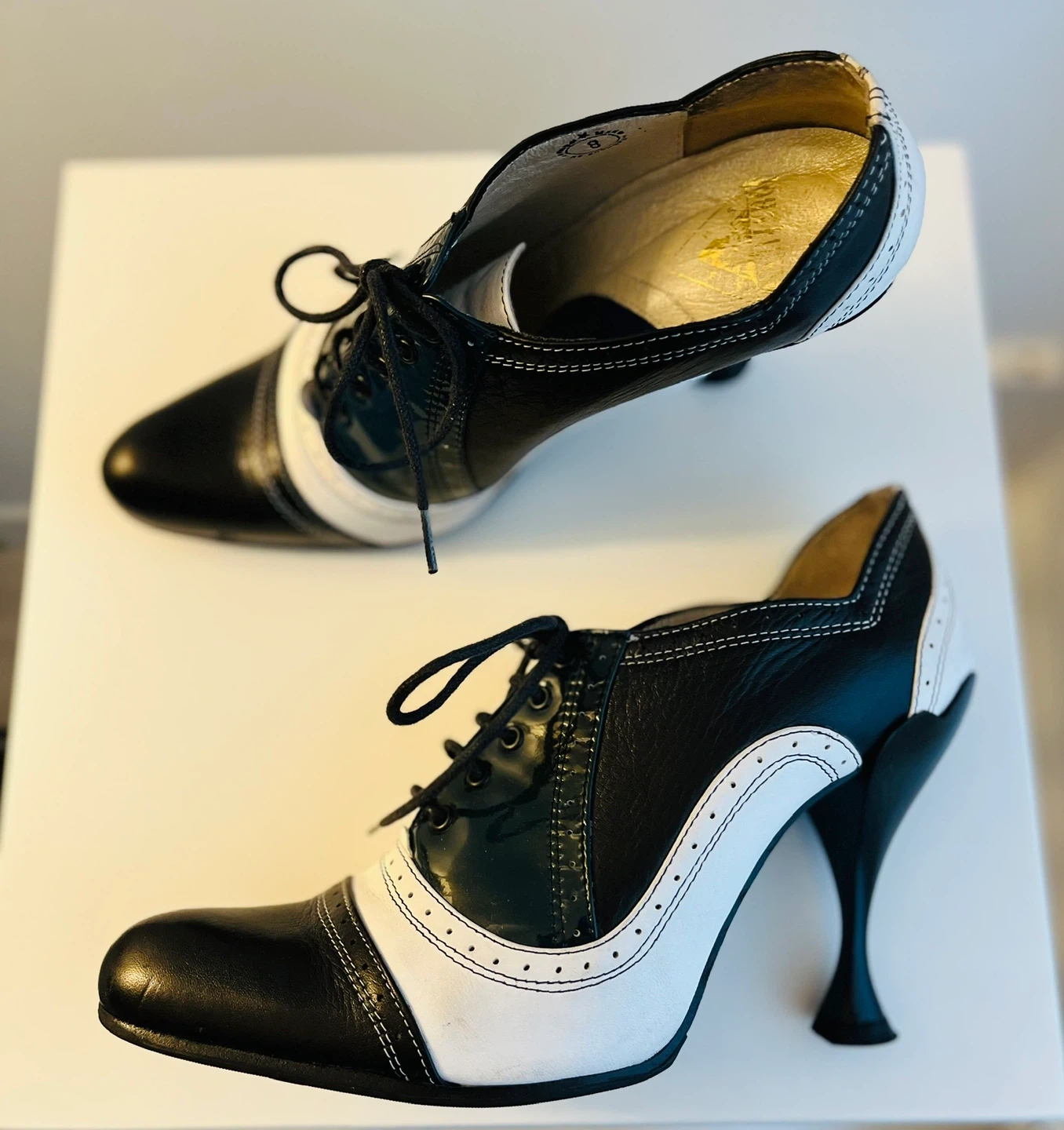 John Fluevog Vintage Black & White Wingtip Heels Size 8