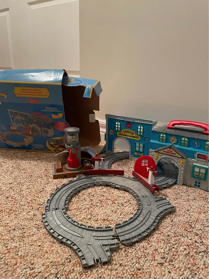 Contains all pieces. 2006 Thomas and friends take along, really useful engine set. Additional $15 if you’d like the Thomas train that comes with it.