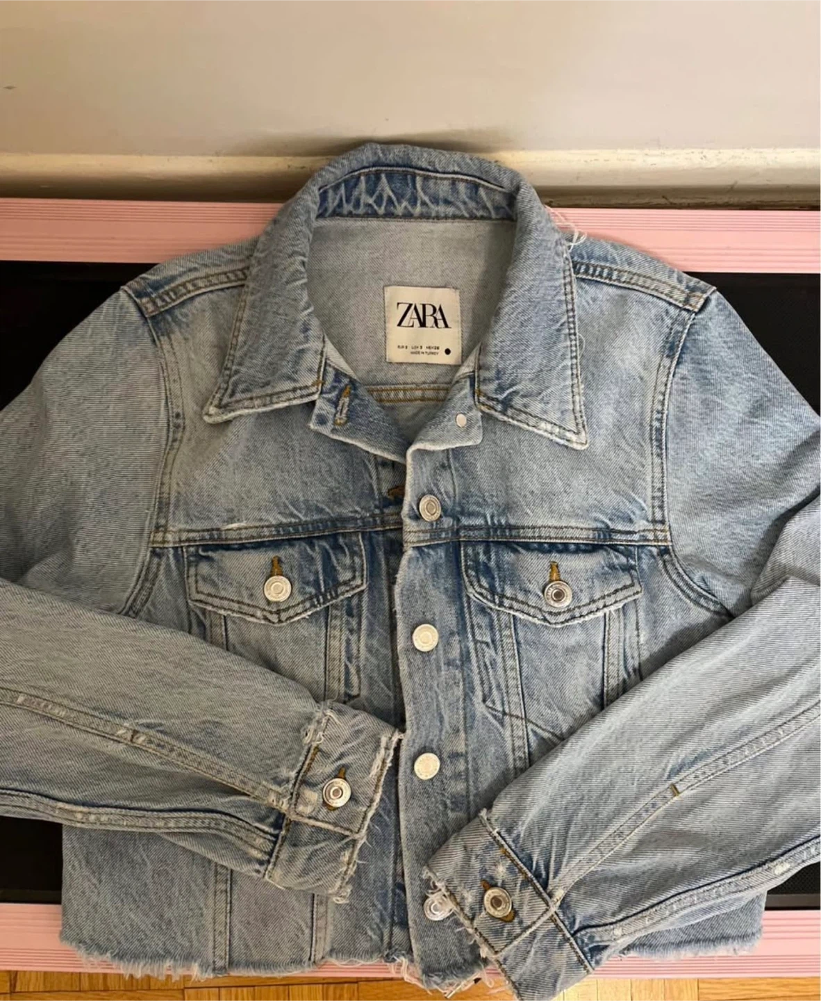 Classic light wash denim jacket from Zara. Made in Turkey. It's a size small and in perfect condition!