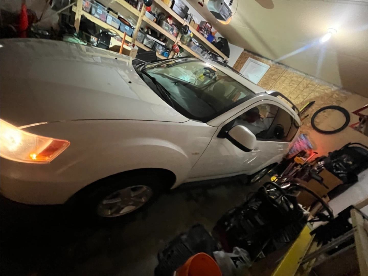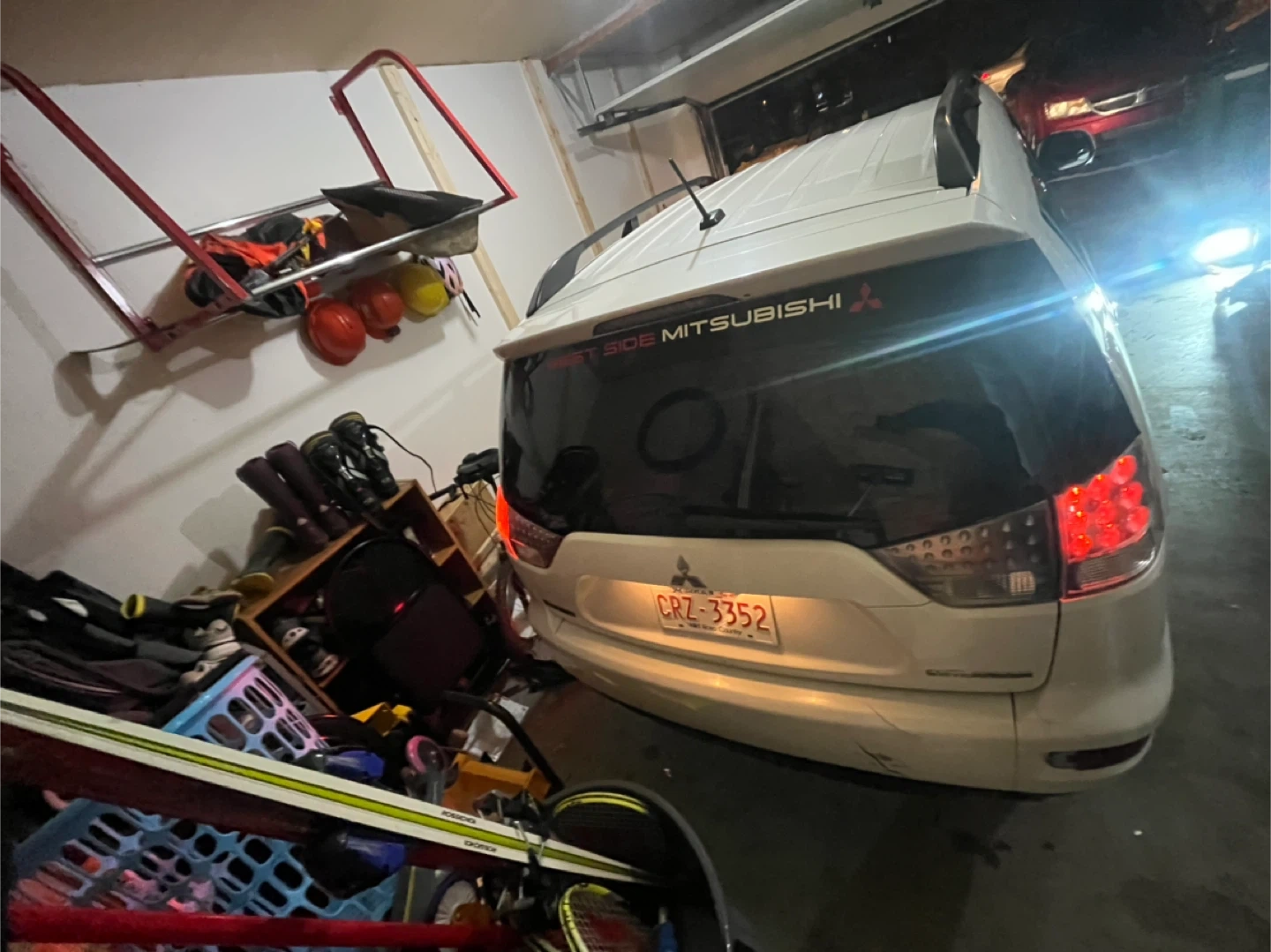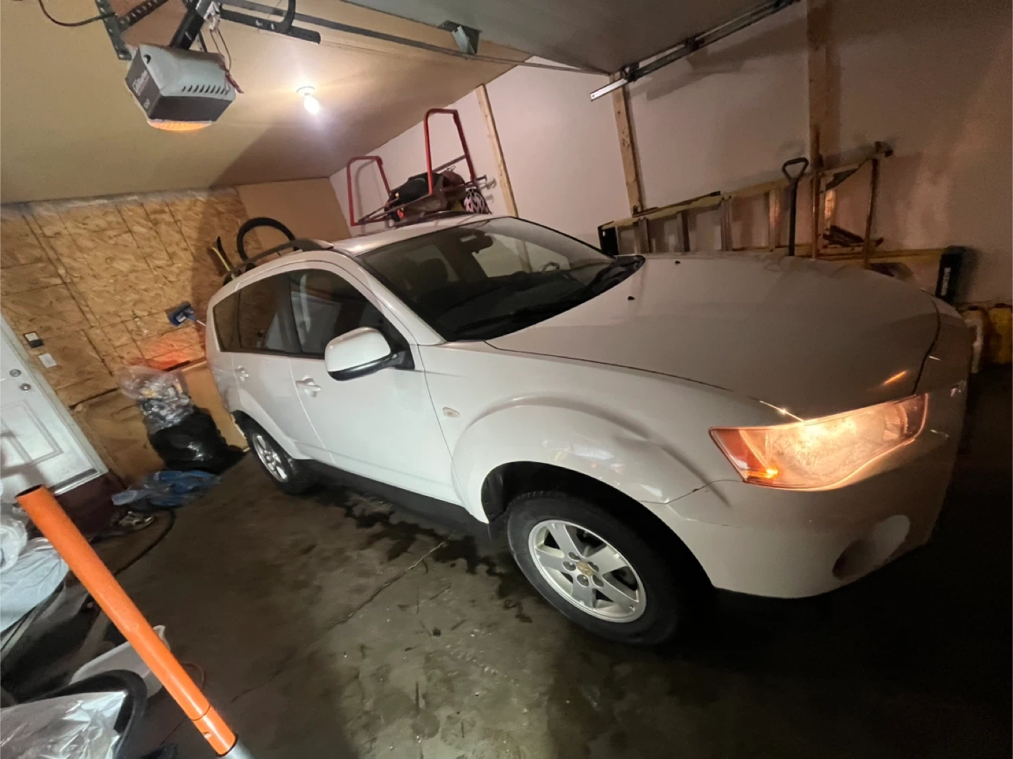 White Mitsubishi Outlander SUV. My sister had this car for the last 3 years and it’s a great car for winter. Was maintained well It's an SUV front wheel drive / four wheel drive 4 four-cylinder cad . A great option for families!