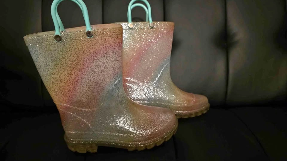Rainbow Glitter Rain Boots - Size 9 🥕