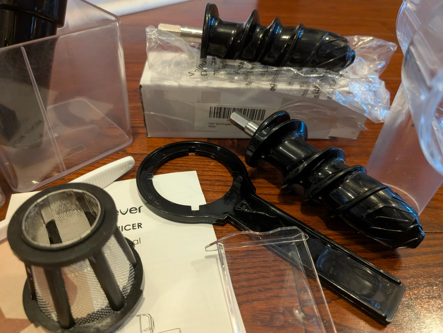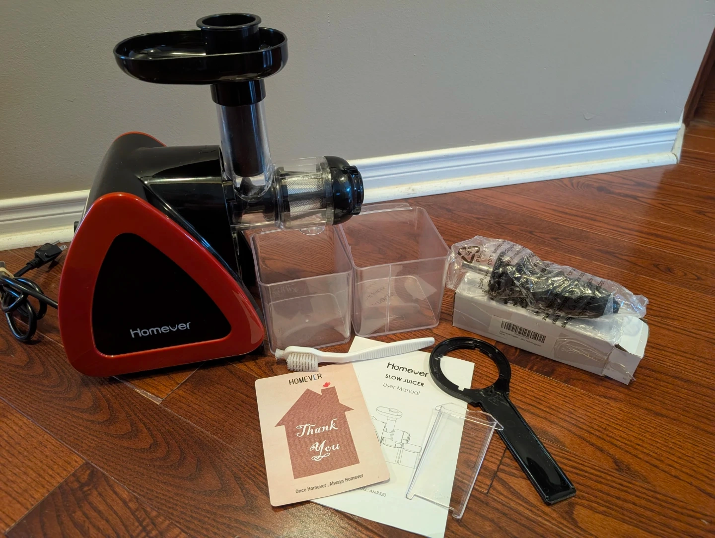 63Used for about 3 months typically for celery juice then stored away. This was the best reviewed juicer at the time on Amazon and I paid over $150 for it. It comes with all original parts and accessories, including a cleaning brush and pulp/juice container and manual. Tested and working great! Note : Extra auger spiral propeller included and like new. Purchased for $25 Additional Specifications: * Type: Masticating slow juicer * Brand: Homever * Condition: Excellent * Colour: Red and black PRICE IS FIRM and if ad up then item is available. Crossposted. Pick up in North Ajax around Salem and Taunton Rd area. SFPF home. Please see my other postings and THANKS for your interest.