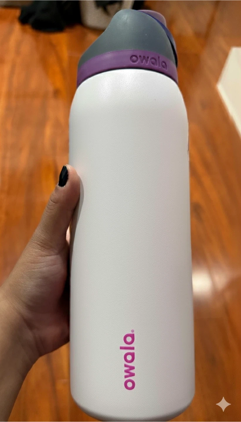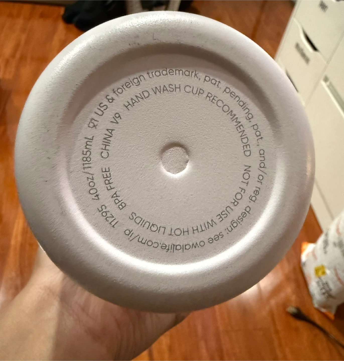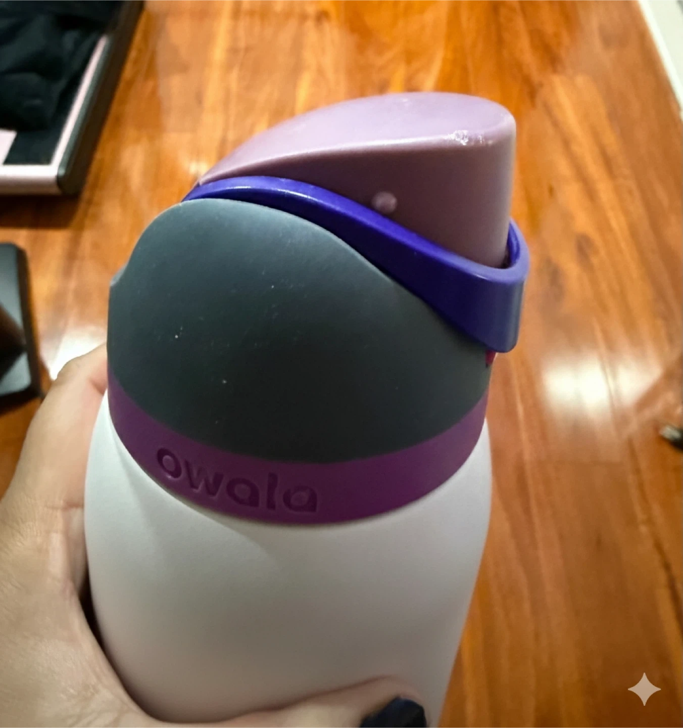 143Selling my 40oz Owala water bottle. Used on and off for 2 months. Excellent condition other than a little notch on the lid as shown. Small scrape at the bottom as well, not noticeable. Color is called Dreamy Field.