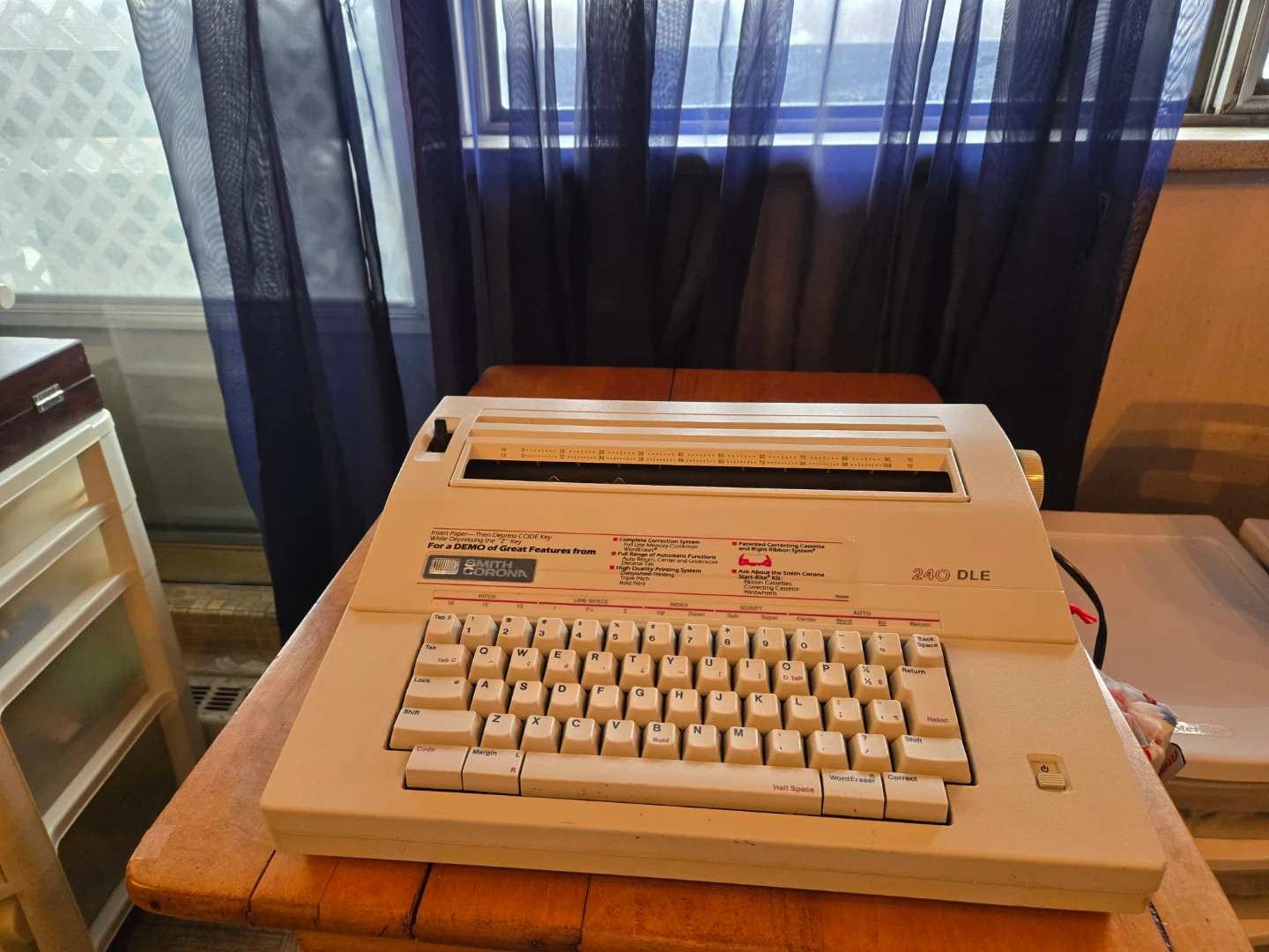 This Smith Corona 240 DLE is an electric typewriter. It features a patented correcting cassette system for easy edits. It also includes a full range of automatic functions and a high-quality printing system. It's great for typing documents or reports.