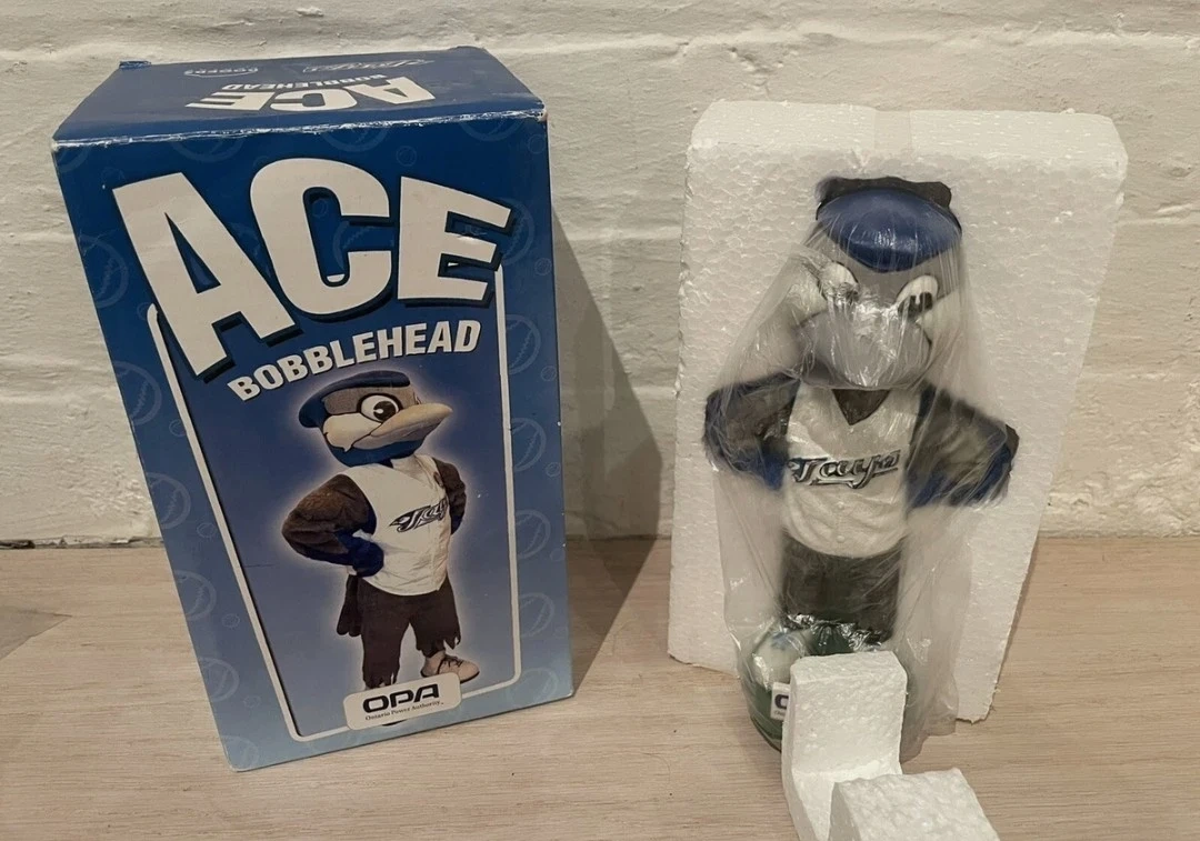This is an "Ace" Toronto Blue Jays bobblehead that comes in its original box with protective foam packaging.