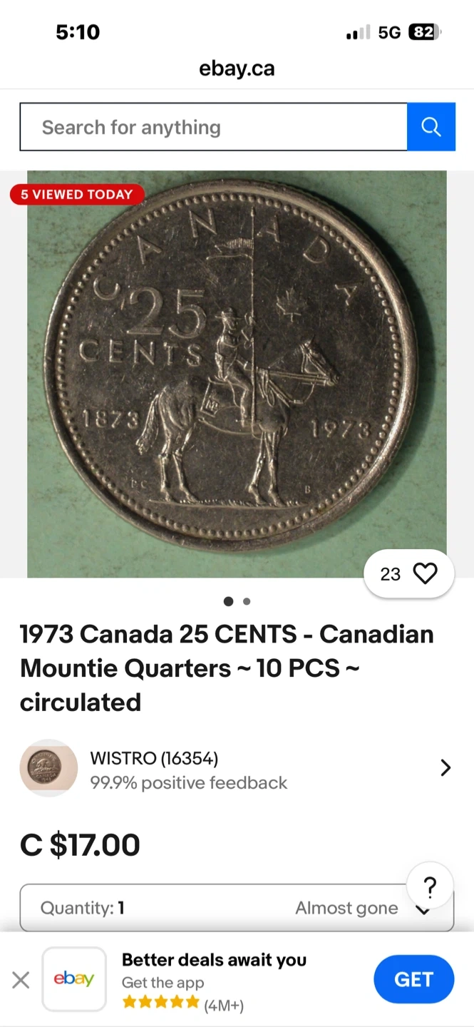 Police 👮 100 celebration This is a 1973 Canadian 25 cent coin featuring the Mountie. It's a circulated coin. These quarters were minted in Canada.