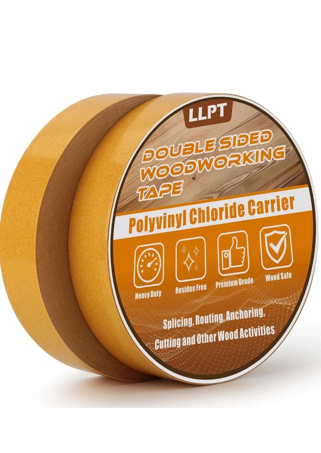 This LLPT double sided woodworking tape features a Polyvinyl Chloride carrier. It's residue-free and heavy duty. Suitable for splicing, routing, anchoring, cutting, and other wood activities.