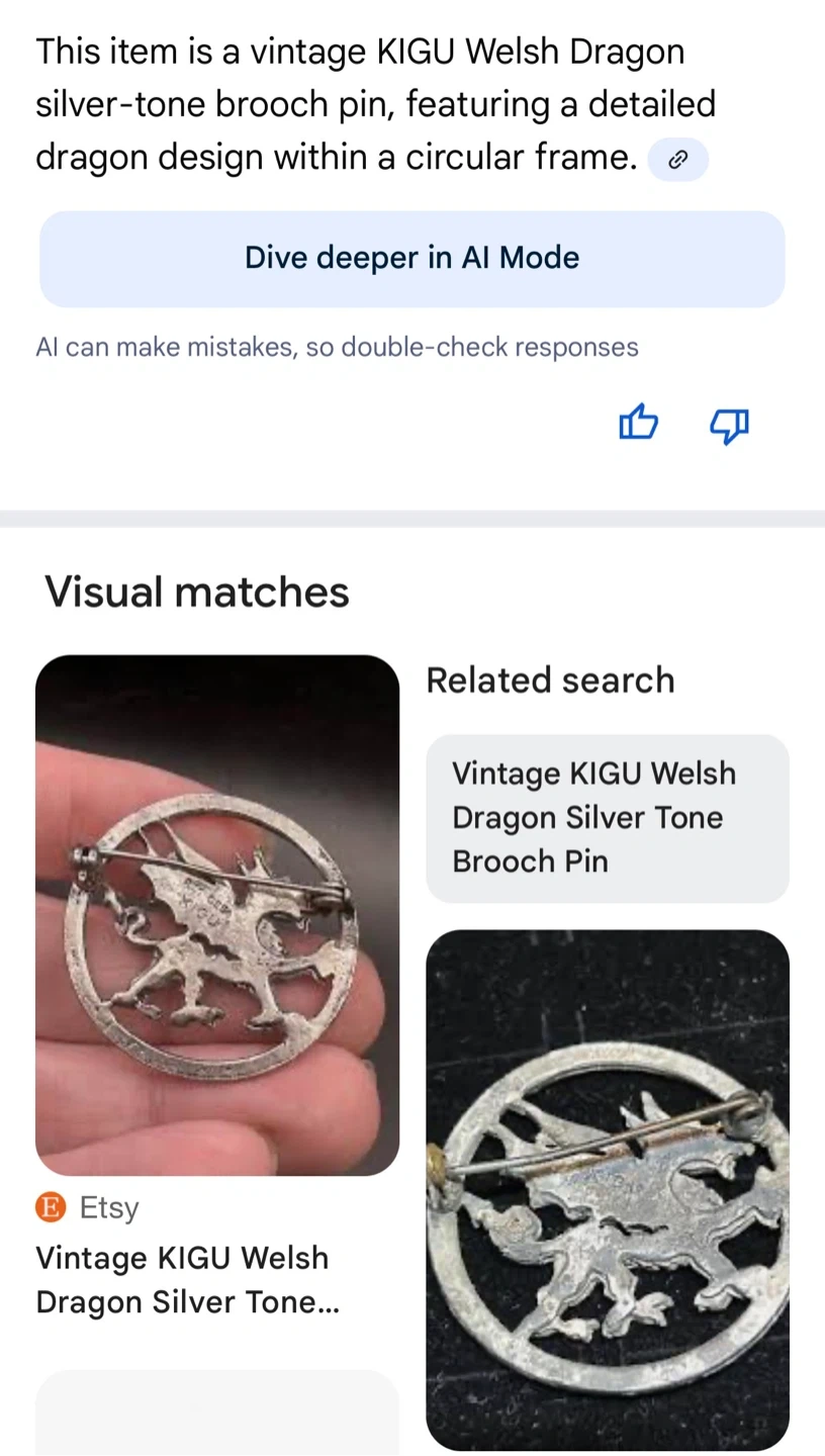 Vintage KIGU Welsh Dragon Brooch Pin