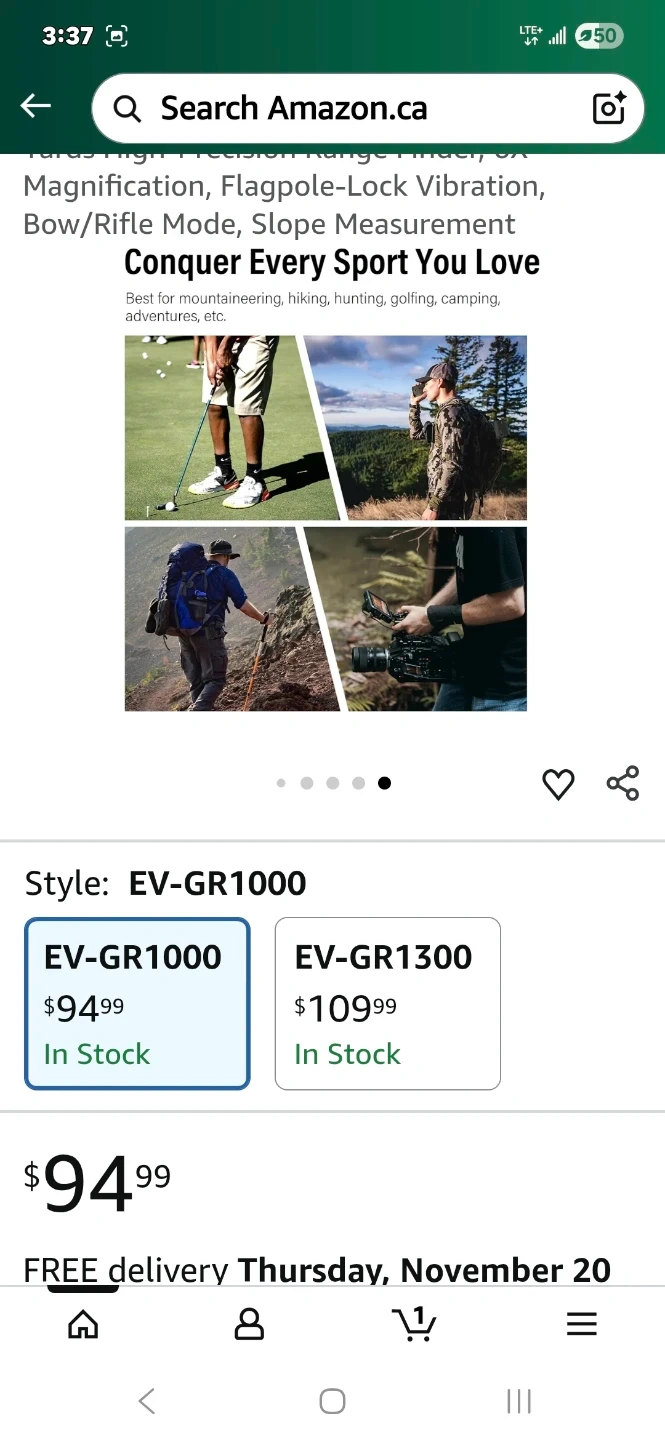 331Selling a brand new CoxiVision EV-GR1000 2 in 1 Golf/Hunting Rangefinder! It comes with the original box and accessories. This rangefinder has 6X magnification and ±0.5 accuracy. Perfect for staying ahead of the game whether you're golfing or hunting!