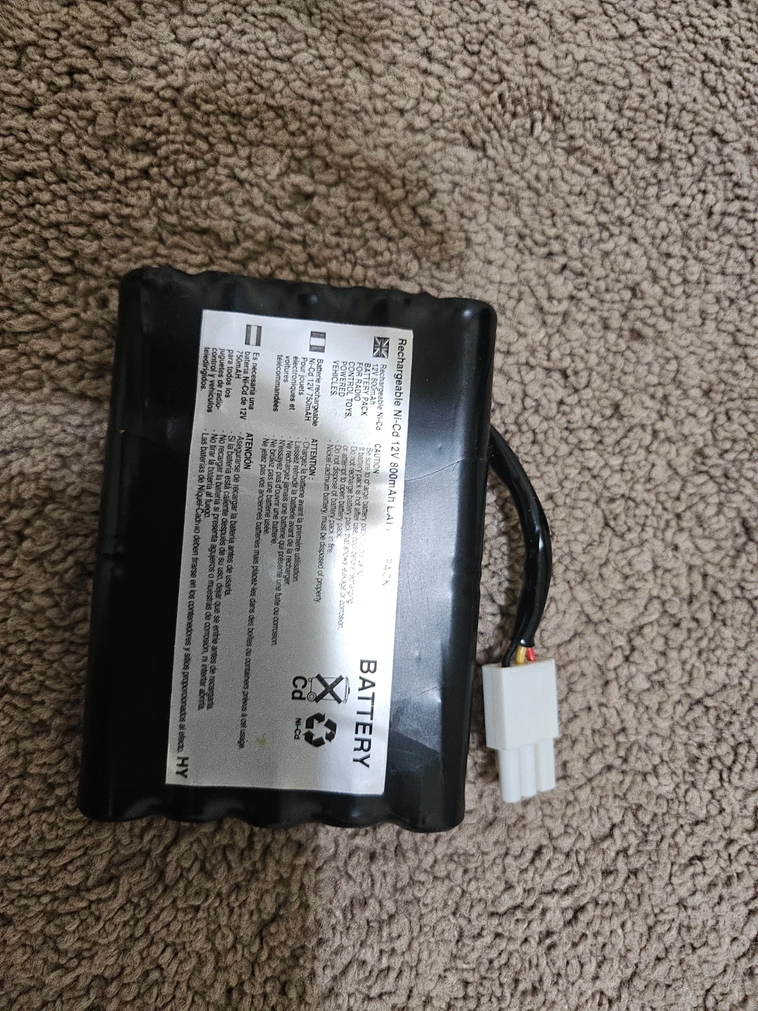 This is a rechargeable Ni-Cd battery pack. It's 12 volts and has a capacity of 2000mAh. It's a replacement battery for devices that require this specific voltage and capacity.