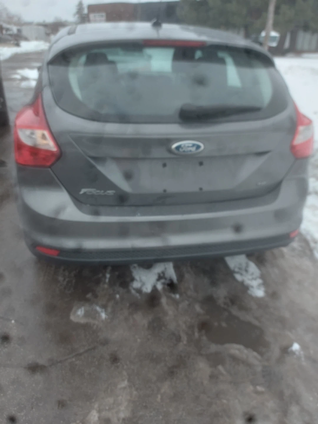 Grey Ford Focus hatchback. It's a 2012 model with 218,548 km. The car is grey and has a hatchback body style. This car would be useful for someone looking for an affordable used vehicle.