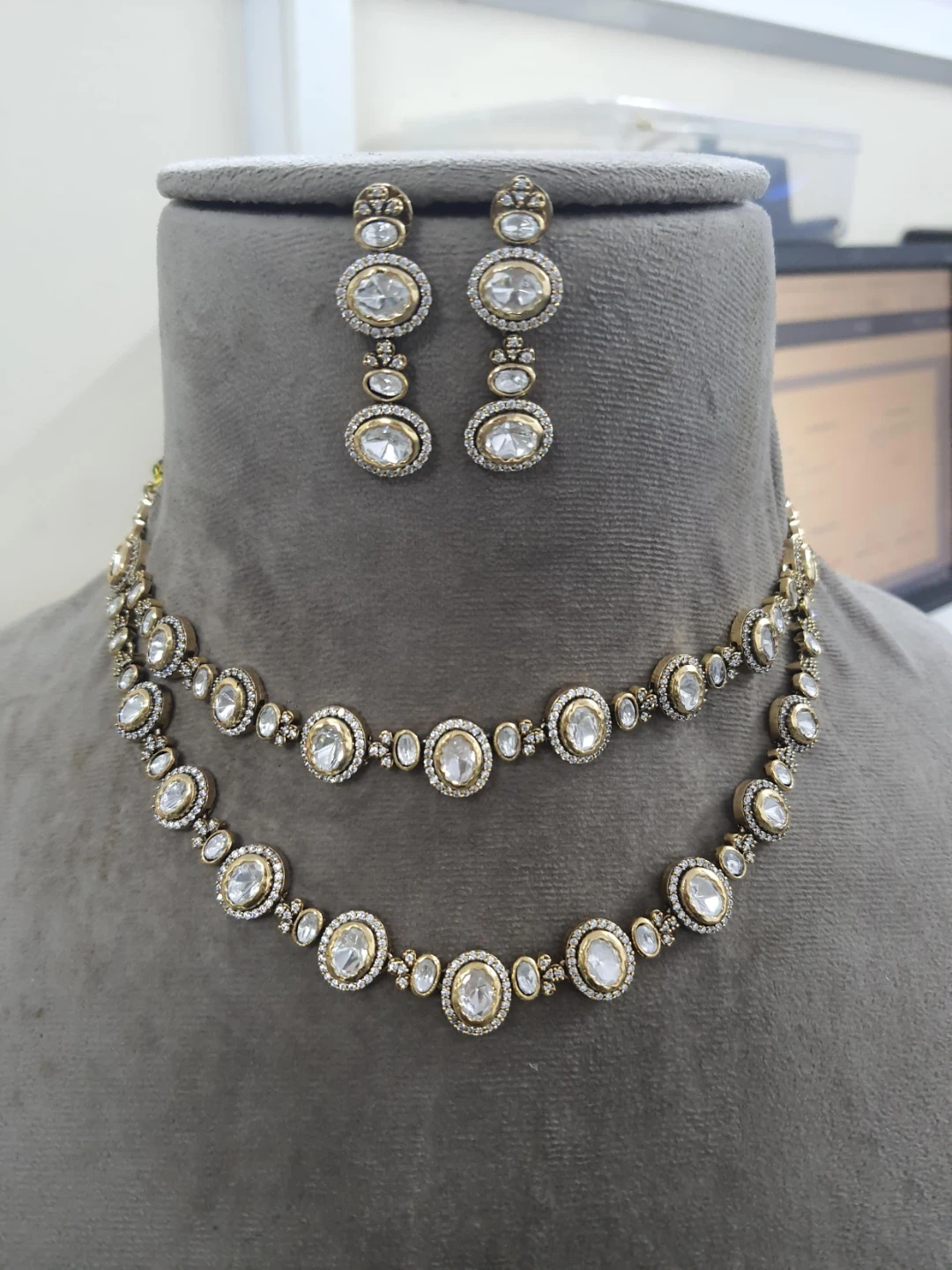 Double-Layered Polki Necklace Set (Bridal/Reception)