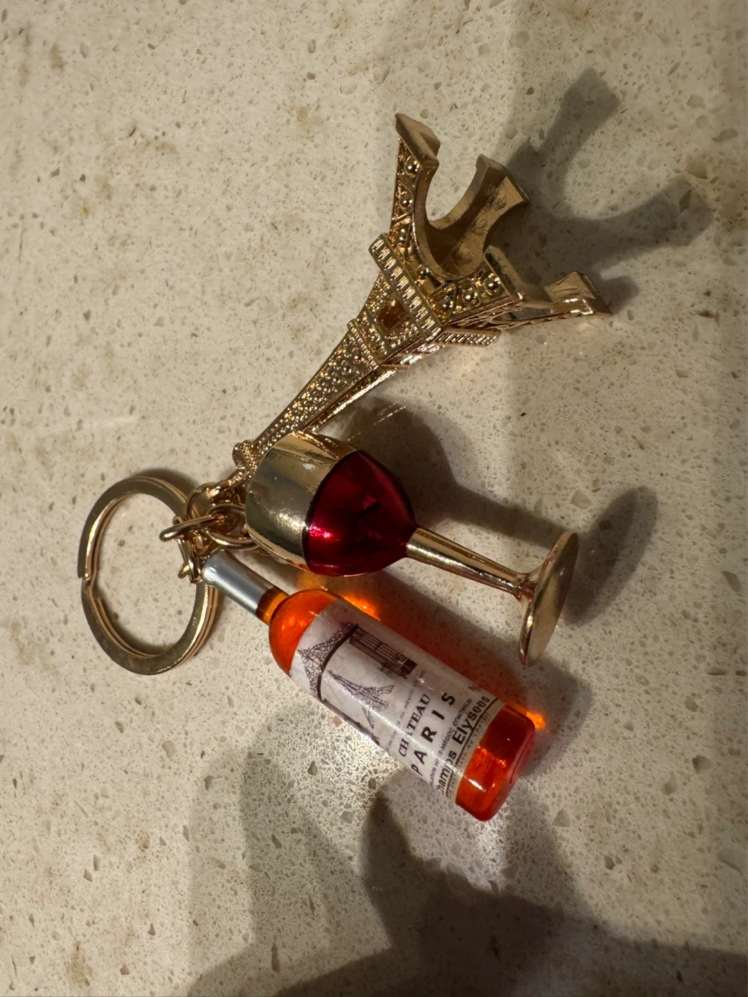 Eiffel Tower Wine Glass and Bottle Keychain