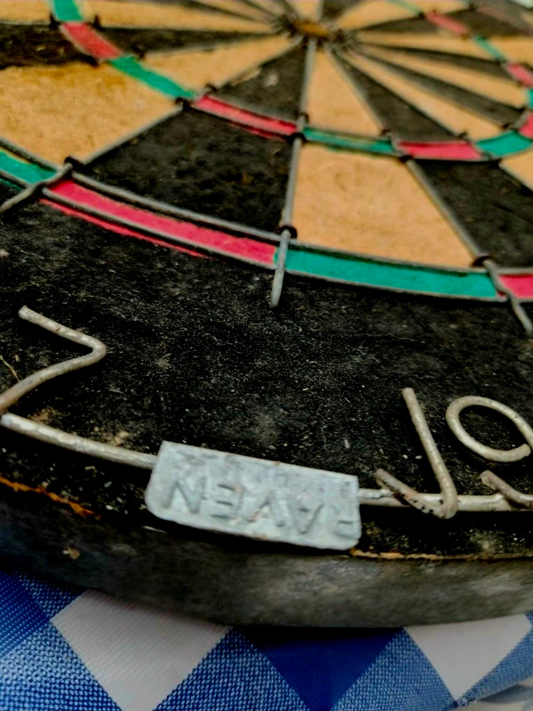 Raven Sisal Dartboard made in England. Condition is used. Shipped with UPS Ground.