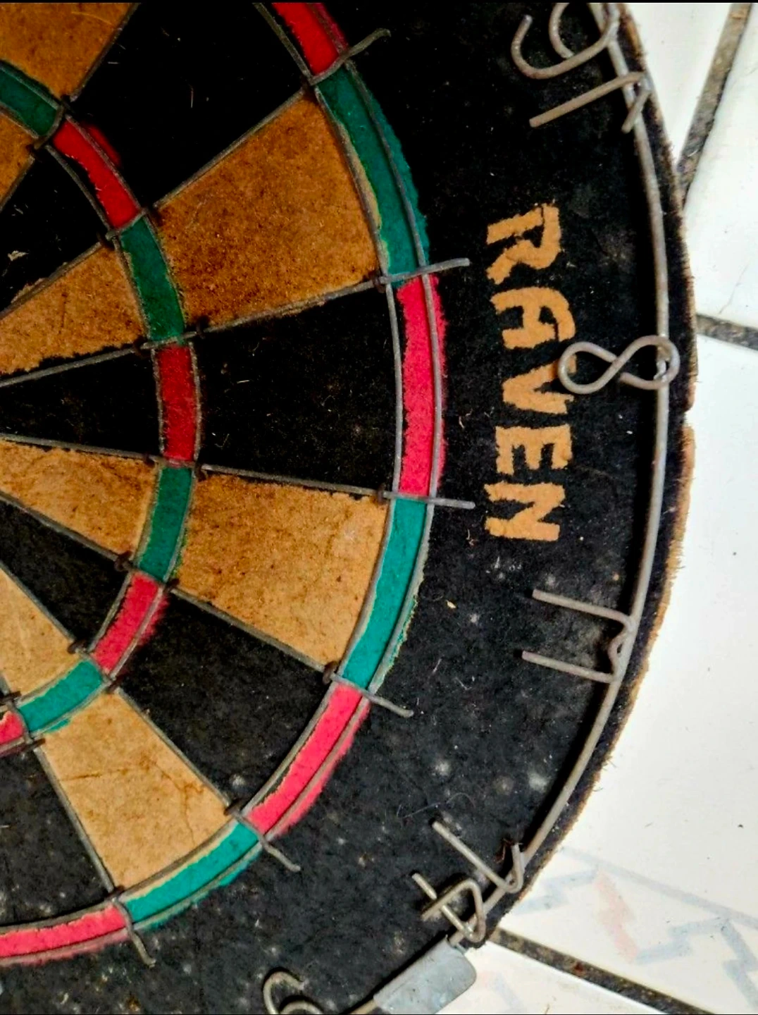 Begin your darting game right with the Raven Sisal Dartboard! This dartboard is constructed from compressed sisal fibers, the latest innovation in steel tip darting. Constructing the board this way gives new life to your dartboard, as the special technique allows the sisal fibers to self-heal, as they remember their original shape. These dartboard will last years longer than their old school wood or paper counterpoints. The bristle dartboard features a 100% staple-free bullseye. This greatly reduces your chance of a bounce-out occurring while you shoot for a bullseye, increasing your scores. Other dartboards secure the spider with staples, increasing bounce-outs and frustration. The Raven also features galvanized triangular spider wire. This gives the spider great durability and strength to last the life of the board. Thanks for looking.