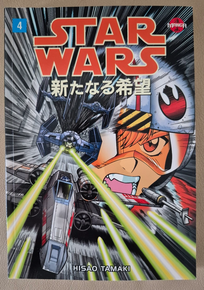 Complete set of four Star Wars A New Hope manga by Hisao Tamaki. Features iconic characters and scenes from the Star Wars universe. Collectible manga.