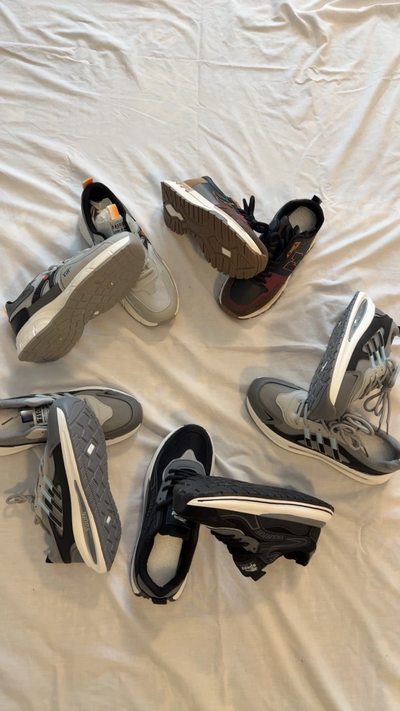 A collection of stylish men's fashion sneakers in various colours and designs. Features include durable rubber soles and comfortable uppers. Great for casual wear!