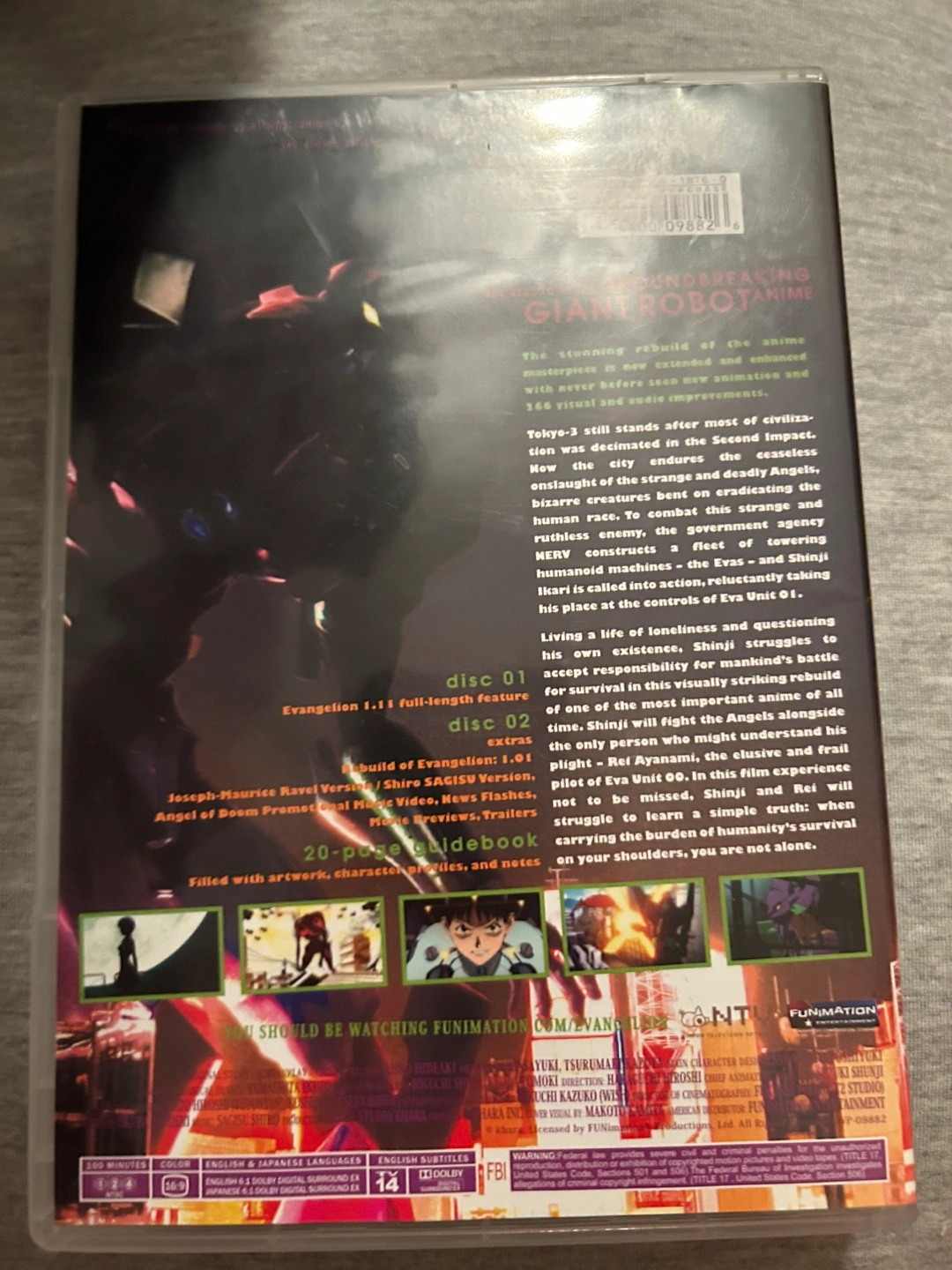 Selling the Evangelion 1.11 You Are (Not) Alone Two-Disc Special Edition DVD. It includes the full-length feature on disc 01 and extra features on disc 02.