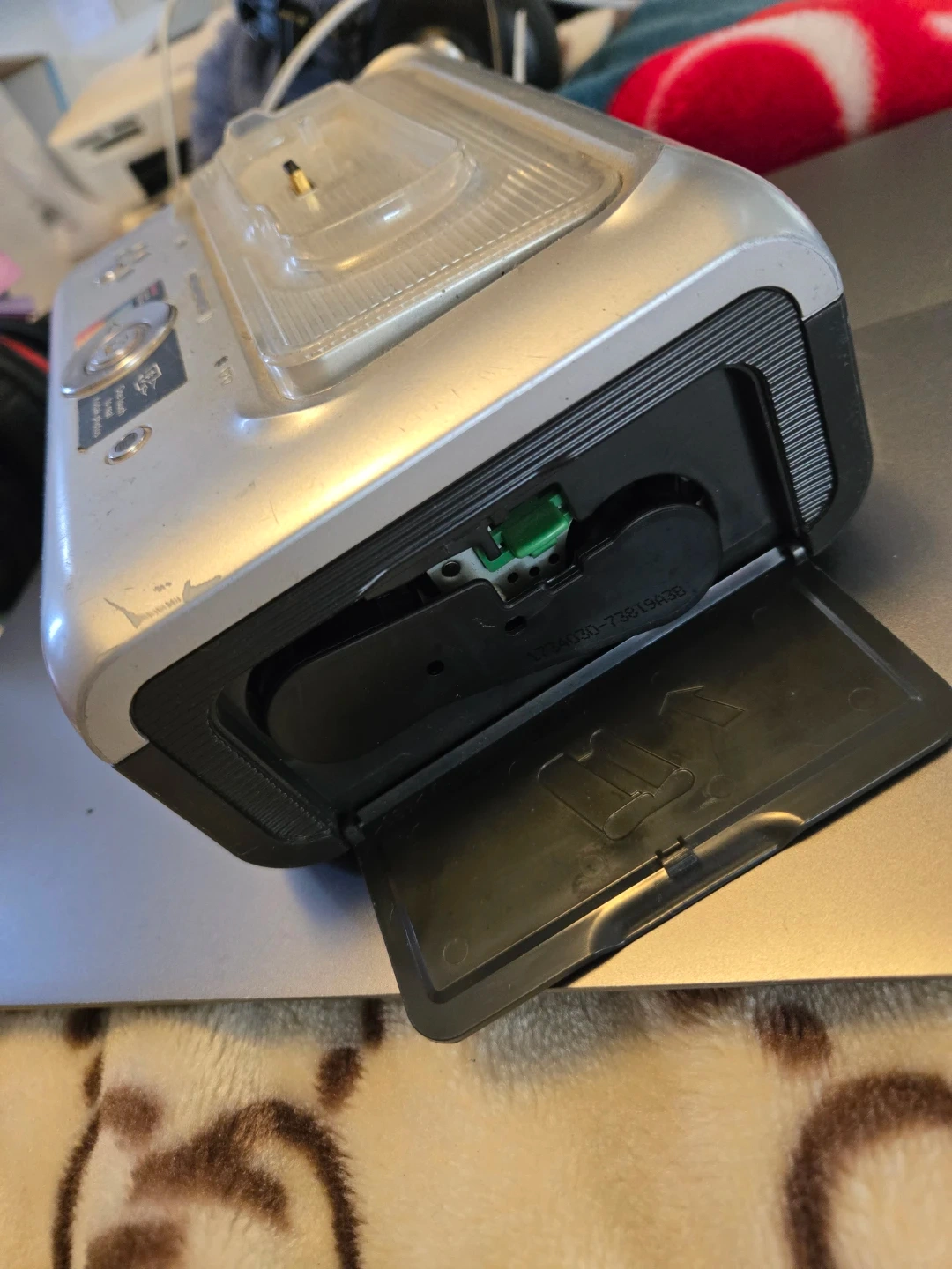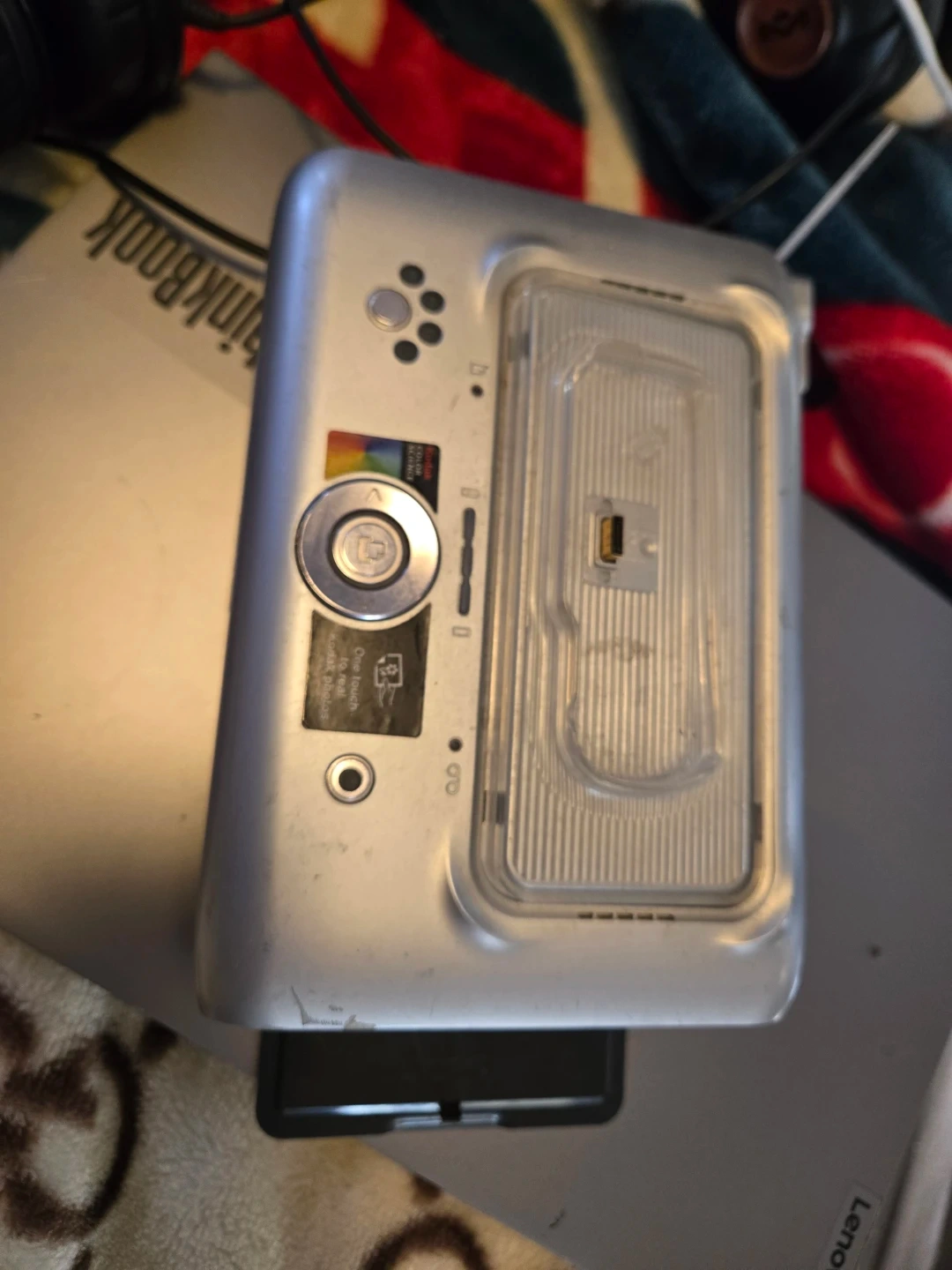 This is a Kodak EasyShare printer dock series 3. It's a silver and black digital photo printer dock. It has a one-touch button for printing photos. It also includes a USB port and a card slot for easy connectivity.
