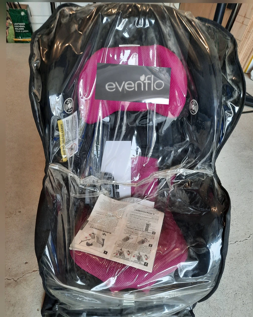 22Selling an Evenflo car seat in great condition! It features a stylish purplish pink and black design. The car seat comes with the original instructions. Perfect for keeping your little one safe and comfortable on the road