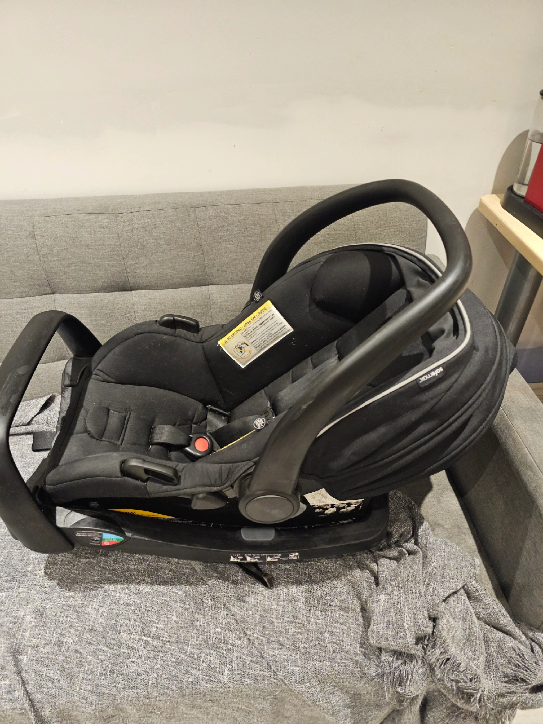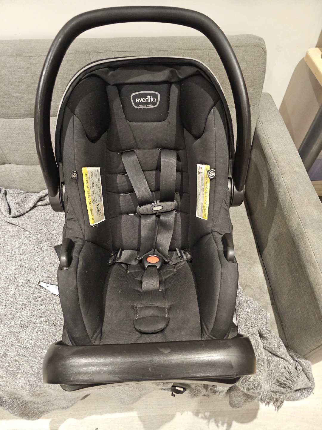 Selling a gently used Evenflo infant car seat in black. It's in great condition and ready for a new little one! Perfect for safely transporting your baby.