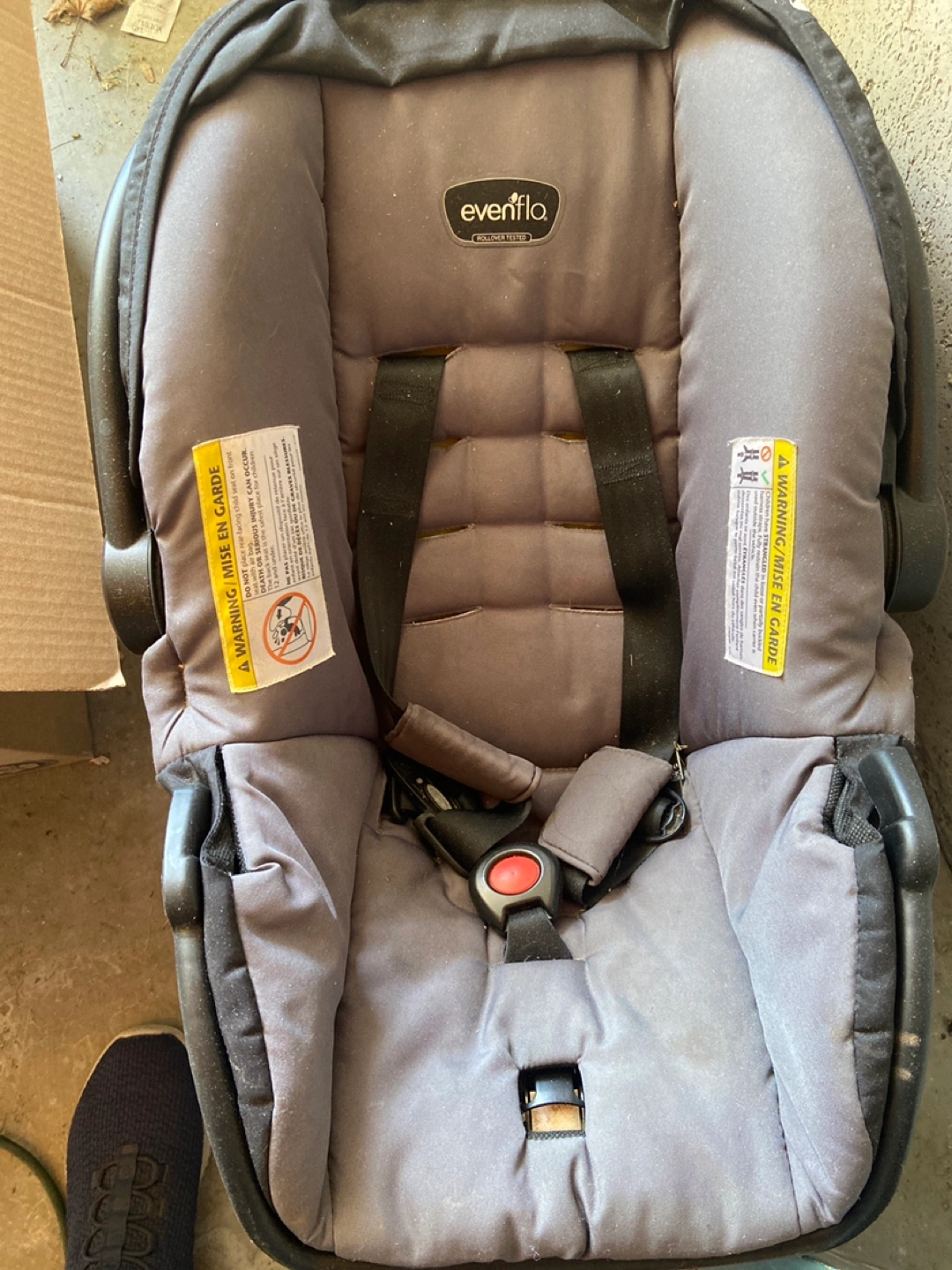 108Grey and black infant car seat 0 to 24 months . Used condition. Includes all straps and buckles. Minor wear and tear.