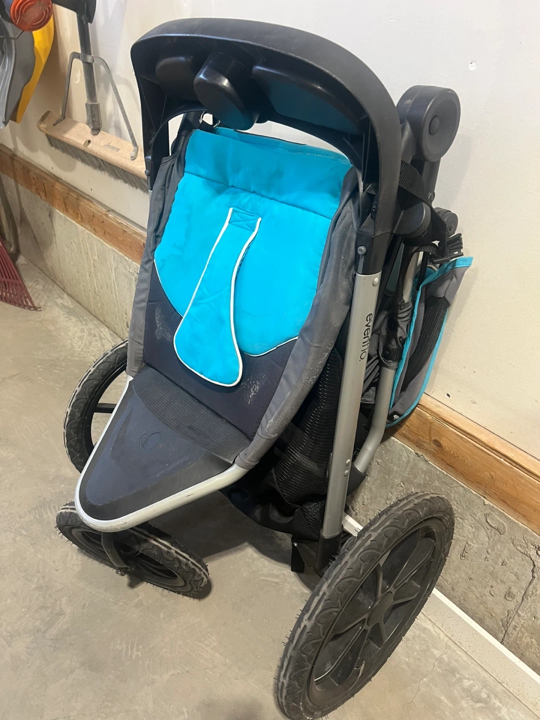 44Gear up for an active lifestyle with a stroller that delivers the ultimate in lightweight mobility — the Evenflo® Victory™ Plus Jogger Travel System. The jogging stroller weighs just 23 lb. Whether you hit the roads or trails, the Victory Jogger Plus Travel System delivers a smooth ride for you and your little passenger, thanks to enhanced suspension and large pneumatic tires. Designed to meet your on-the-go needs, it features a roomy storage basket, plus 2 deep parent cupholders and 2 toddler cupholders with a snack tray. When your workout is done, simply lift the in-seat strap, while pulling on the in-seat ring simultaneously, to fold the stroller into a compact size for easy storage. Whether you’re training for a 5k or just want to get some extra steps in, the Victory Plus Jogger Travel System is a big win for parents who love to get out there and enjoy the fresh air with baby in tow.
