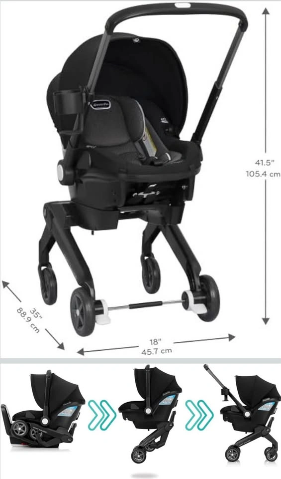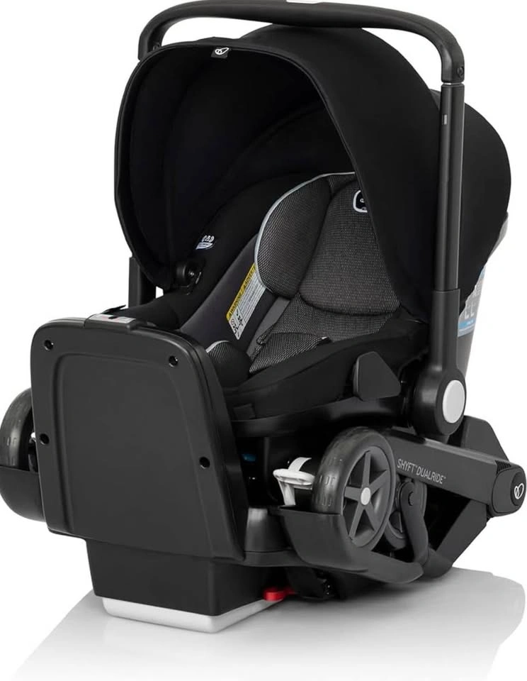 130From wheels up to wheels down, transitions from infant car seat to stroller in one step with ease; leave wheels in base for a lighter infant carrier. Accommodates infants as small as 3 lb and up to 35 lb, who measure from 15.7 in. to 32 in.; compatible with the Evenflo Gold Shyft Travel System. Features LockStrong Installation and Quick Connectors for solid, secure installation in no time. SensorSafe alerts you in real-time to 4 potentially unsafe conditions from the car seat via Bluetooth connection — unsafe ambient temperature, child unattended, unexpected chest clip unbuckling and child buckled too long. Comes with wheels that nest securely in removable, washable wheel wells in base to keep dirt off your backseat, plus a convenient, removable cup holder for you.