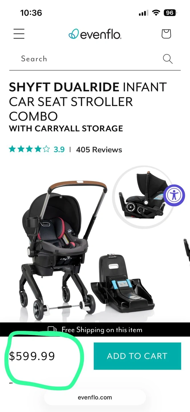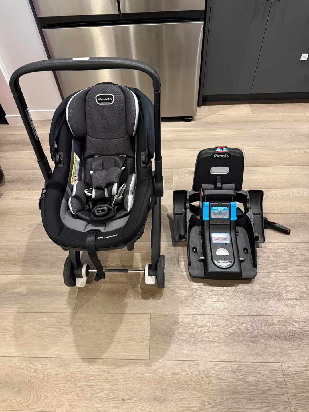 73Selling an Evenflo Shyft DualRide Infant Car Seat and Stroller combo. It's in great condition and ready for a new family! This system makes transitioning from car to stroller super easy and convenient. Perfect for busy parents on the go!