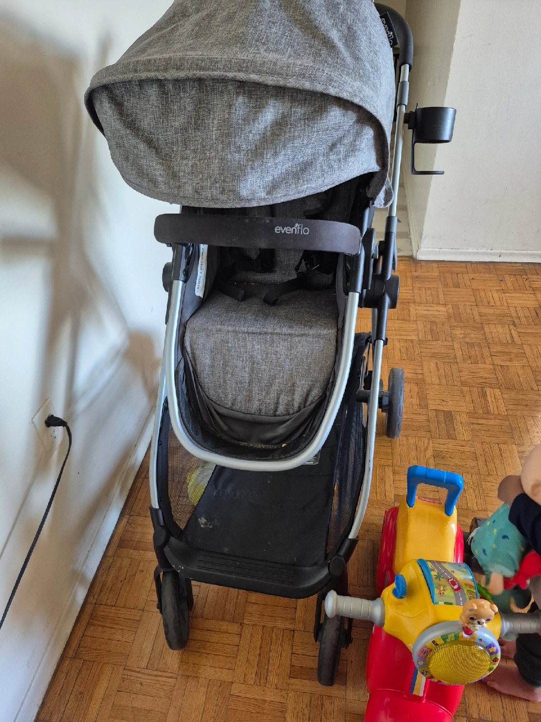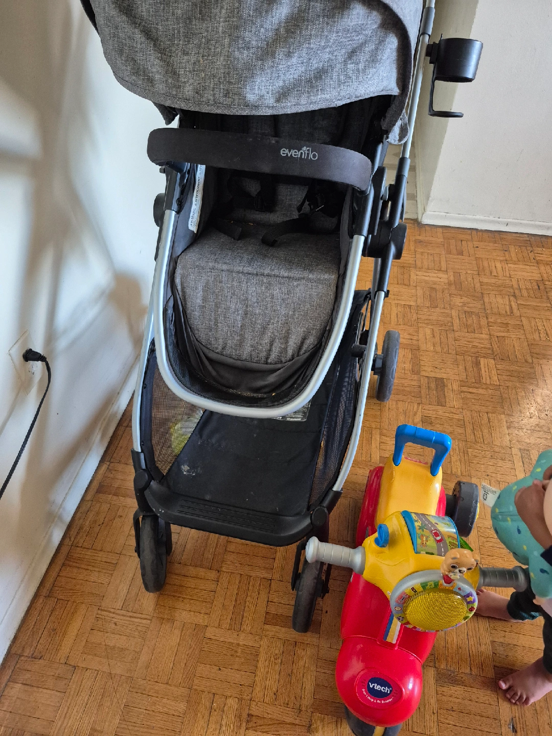 Selling an Evenflo stroller! It's in great condition and ready for a new family. Perfect for walks around the neighbourhood or trips to the park. It features a comfortable seat and a spacious storage basket underneath for all your essentials