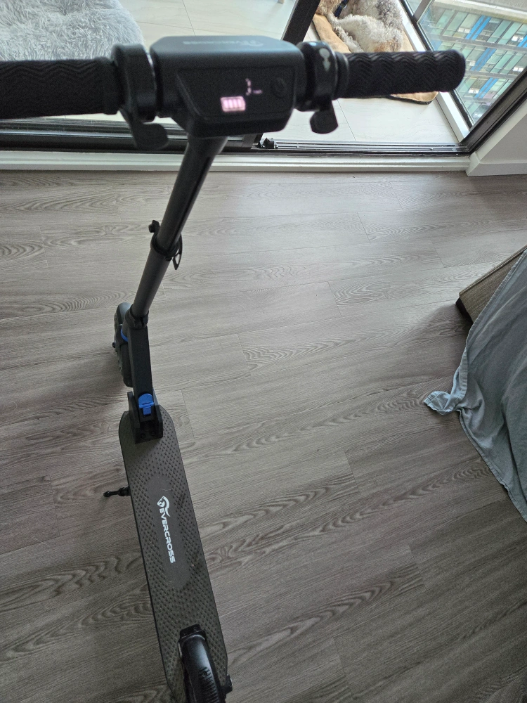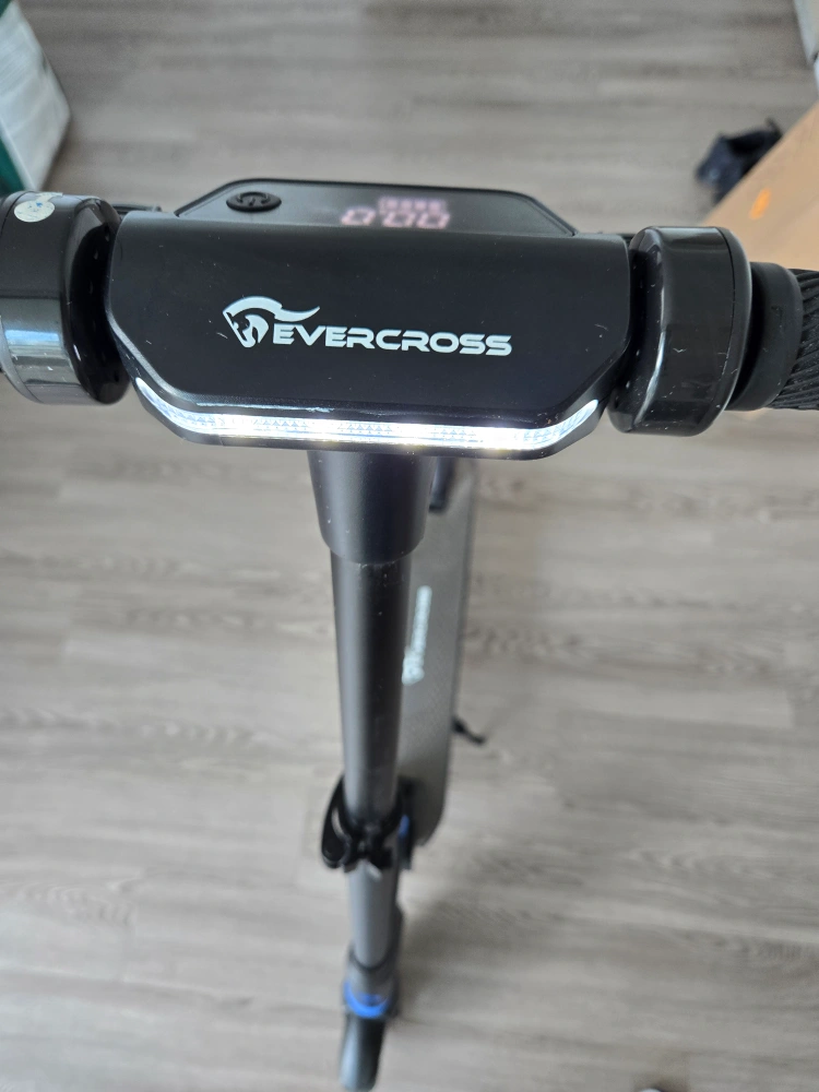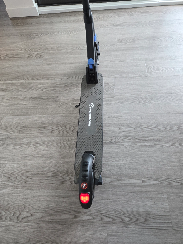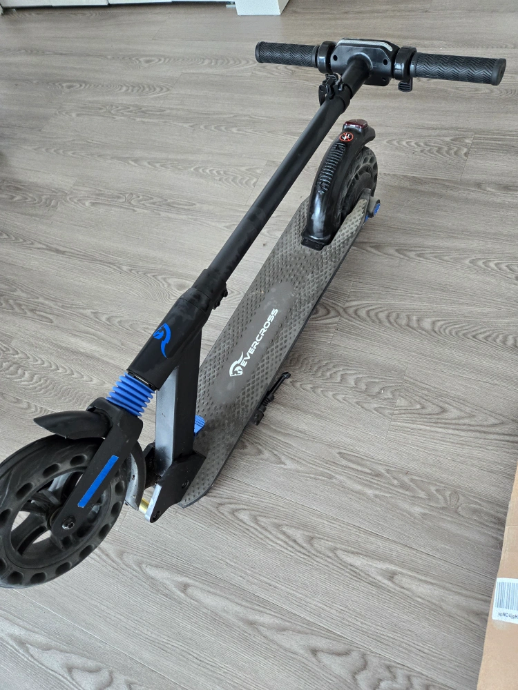 Electric scooter with a digital display. Includes a front light and a rear brake light. Good for getting around the city. EVERCROSS Electric Scooter EV08S, Folding Electric Scooter for Adults with 8'' Tires, 350W Moter, 25KM/H & 20-25 KM E-Scooter bought on June 2023. I used it to go to the gym twice by week. Everything works, you can test it.