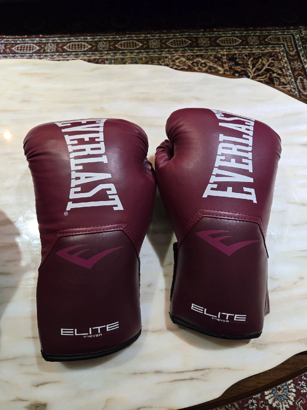 0I'm selling a pair of Everlast Elite Pro Style Training Gloves in a nice burgundy colour. They're in great shape and ready for your next workout! Great for boxing, kickboxing, and other combat sports