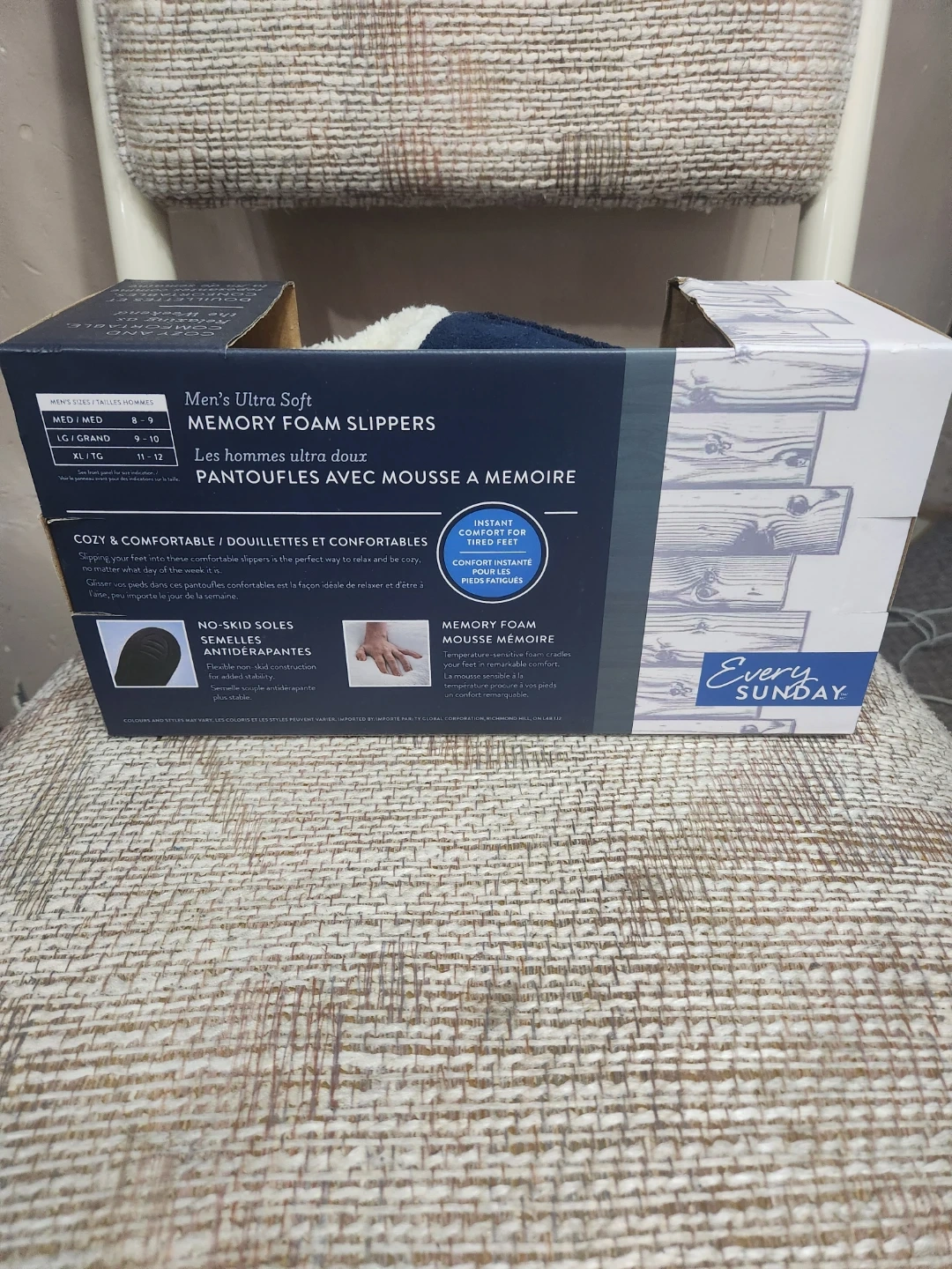 39Cozy and comfortable, these Every Sunday men's slippers are perfect for relaxing at the end of the week! They're navy blue and feature a soft memory foam insole for extra comfort. Size XL (11-12).