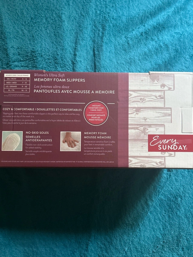 Step into ultimate comfort with these Every Sunday women's ultra-soft memory foam slippers, designed to cradle your feet with every step. These slippers are new in the box, offering a plush and cozy experience. $20 or best offer Specifications: * Brand: Every Sunday * Type: Memory Foam Slippers * Size: Medium (7-8) * Condition: New, in original packaging And just a friendly reminder, if the ad is up, the slippers are available. Don't miss out on treating your feet to a little luxury!