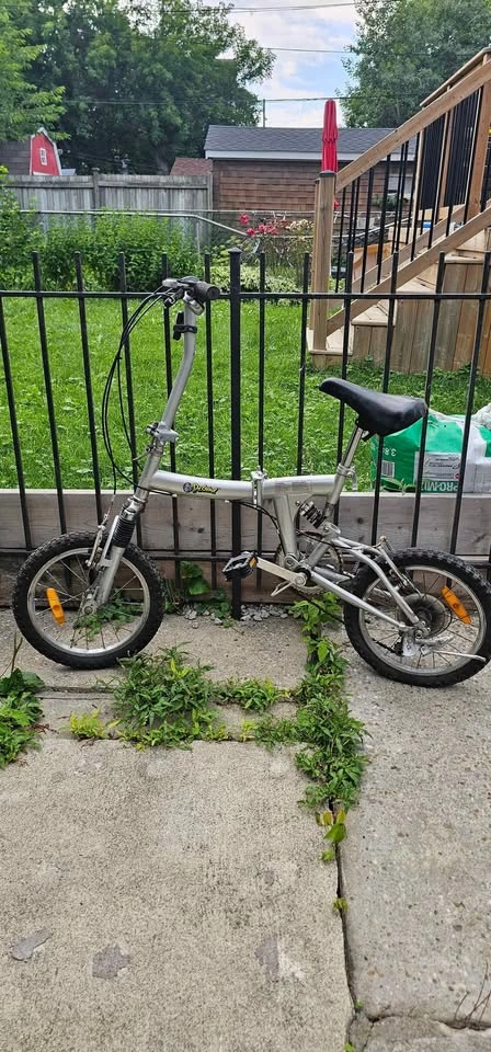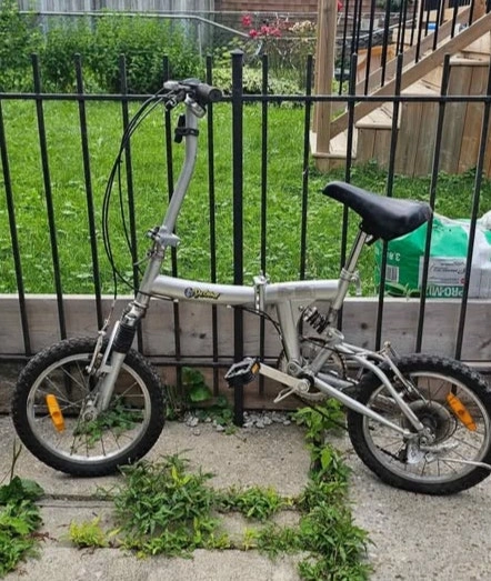 Lightweight folding bike, perfect for long-range commutes. Includes bike lock if you need it. Pick up in Scarborough (Finch & Brimley area).