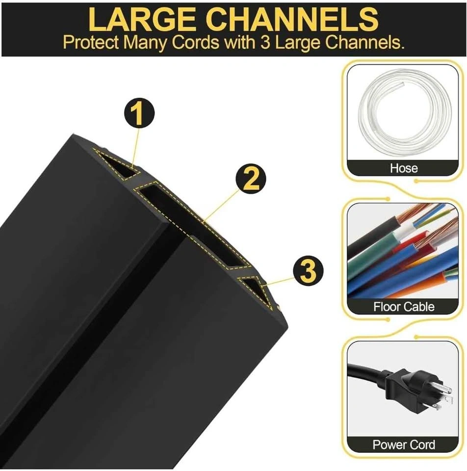 It can efficiently hide and protect cords, preventing accidental tripping caused by cables dragging. It also prevents cables from being crushed and stepped on, reducing damage and extending cables' usage time. If you feel that cord cover is not flat enough, you can first press it with a heavy object before use.