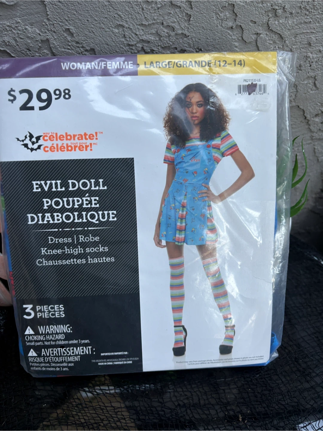 15Selling an Evil Doll costume! It's a women's size large (12-14) and includes the dress and knee-high socks. Originally bought for $29.98