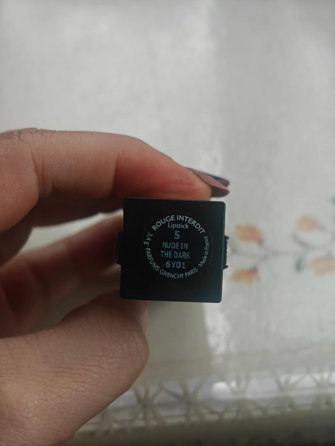 This is a Givenchy Rouge Interdit lipstick in shade 5, "Nude in the Dark". It's a lovely lipstick for everyday wear. The formula is designed for comfortable wear.