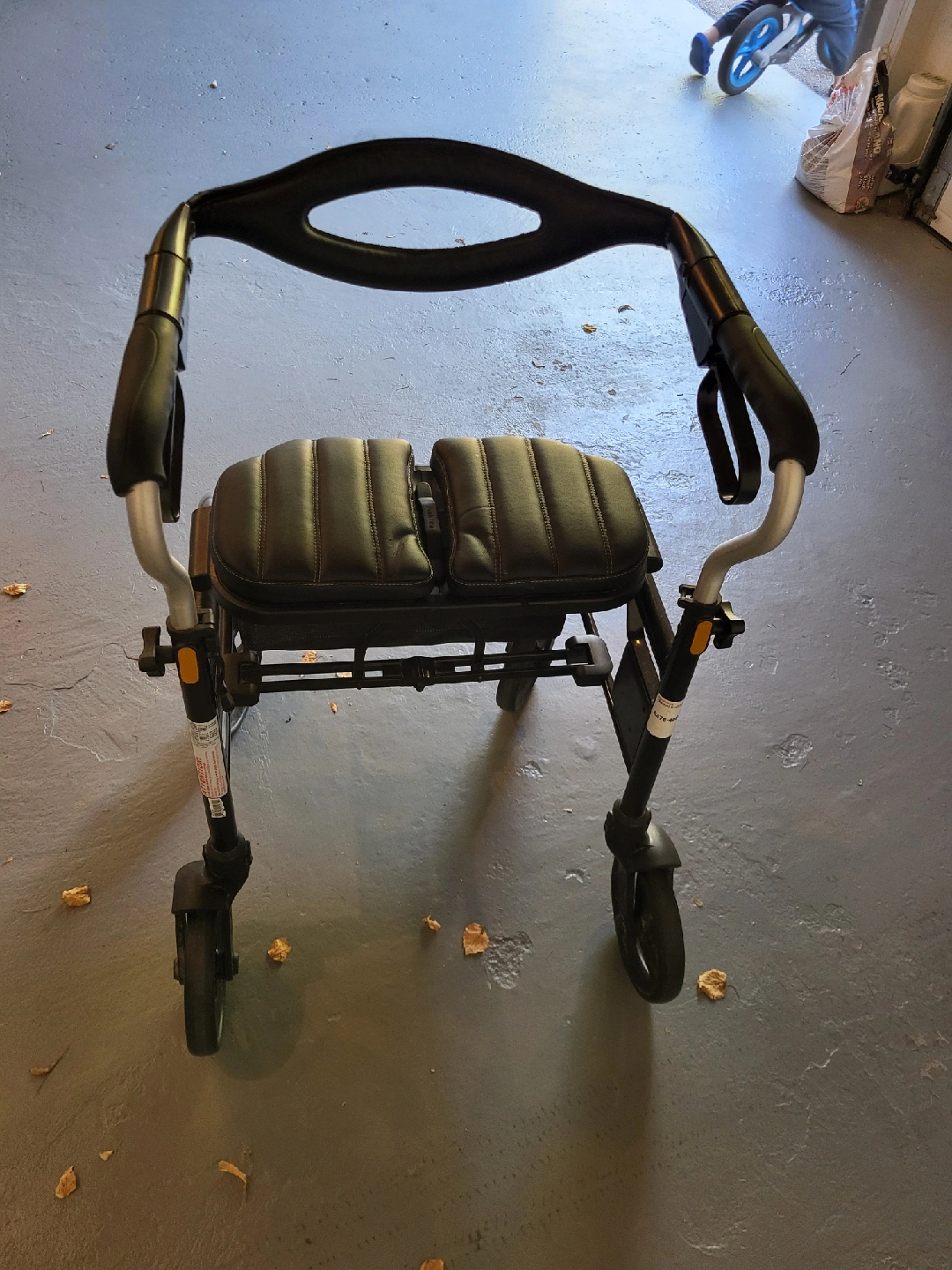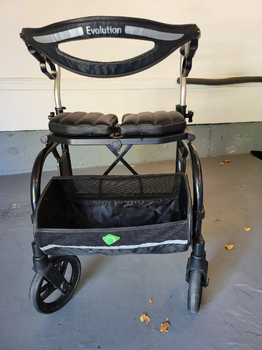 Selling an Evolution walker with a seat. It's in great condition and ready to help someone get around comfortably and safely. It features a built-in seat for resting, and a convenient basket for carrying items. Perfect for indoor and outdoor use!