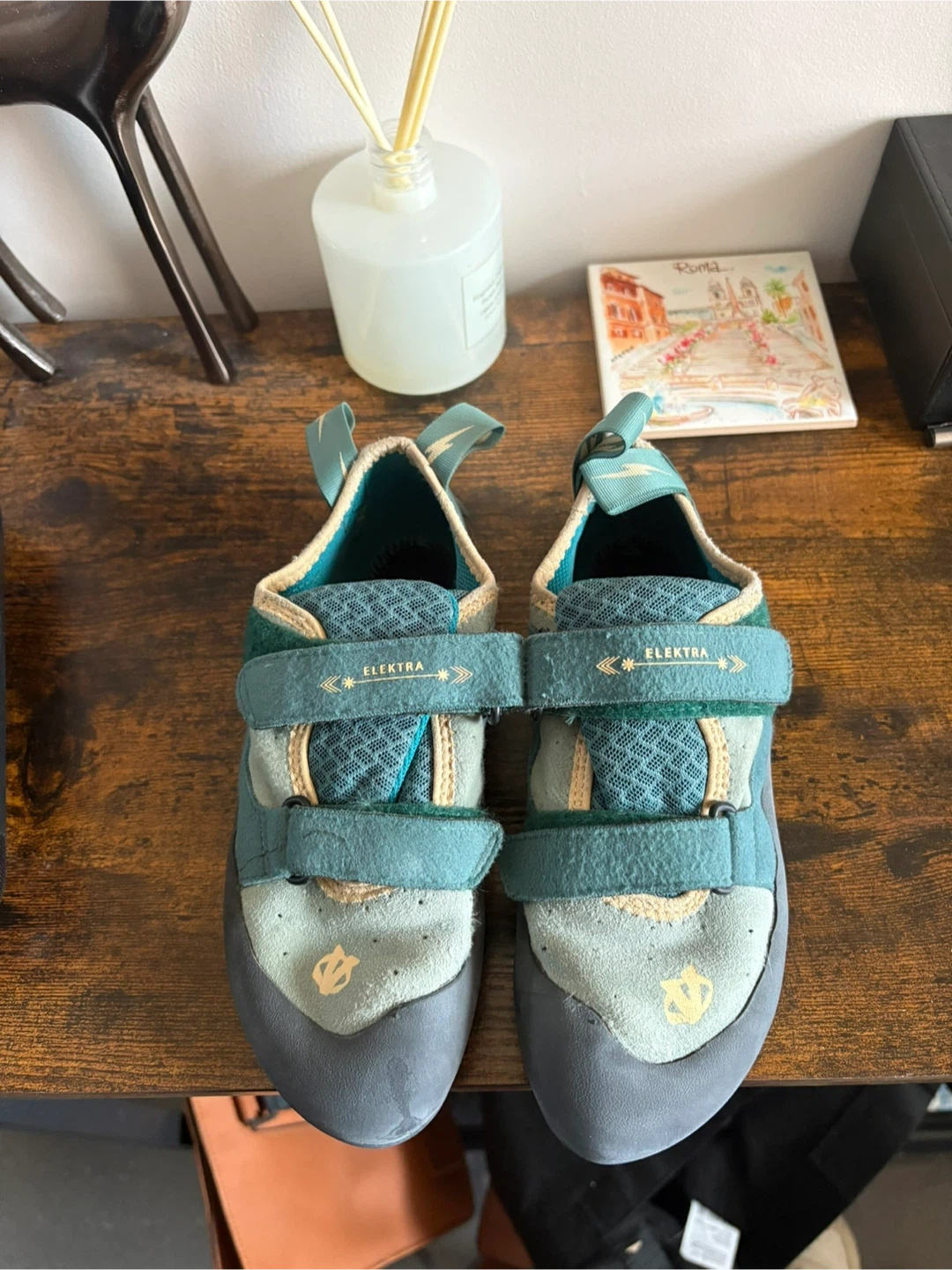 Selling a pair of Elvolv Elektra climbing shoes! They're in good condition and ready for your next climb. These shoes are designed for women's feet, offering a comfortable and precise fit. Perfect for climbers of all levels. Evolv Elektra Rock climbing shoes , size 7 (used 5-10times) fits women foot sizes 6 or 6.5