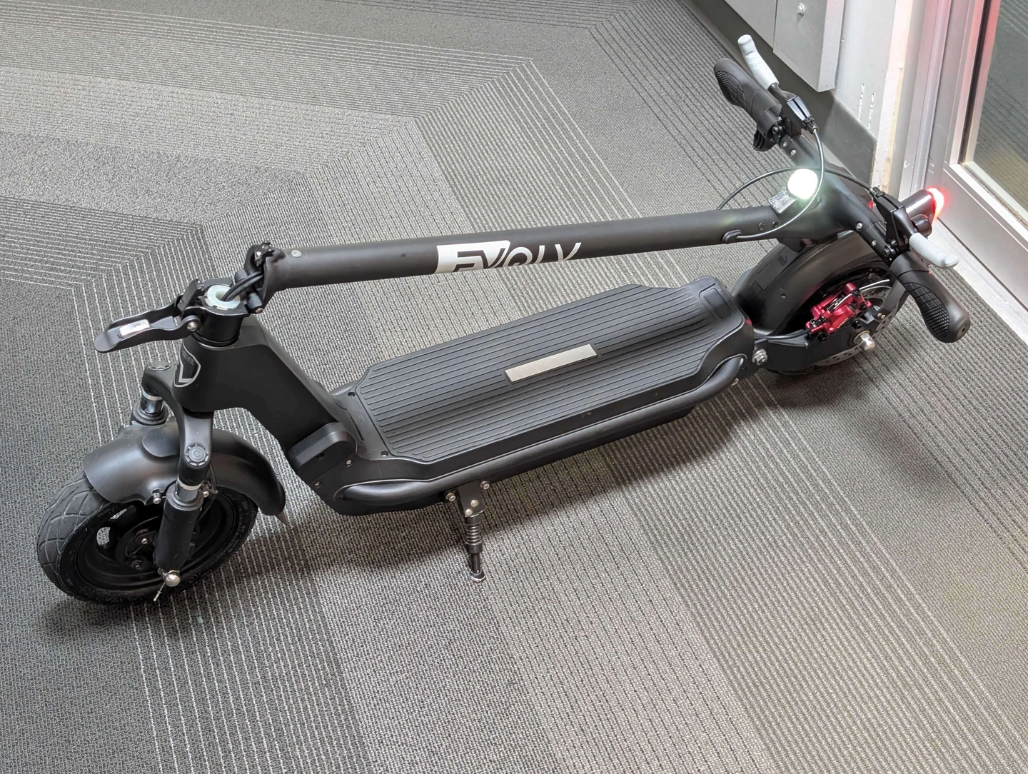 5Designed to be low maintenance and puncture-free. Step up your electric scooter game with hyper-efficiency. Introducing the STRIDE. Cruise smoothly over bumps with full suspension. The deck-integrated rear suspension works in tandem with the dual front shocks to absorb all the vibrations on your ride. Fold it up and pack it away for your weekend getaway. LED headlight and taillight to ensure full front and rear visibility for you and everyone else. Positioned high off the ground, the headlight sweeps the road in white light, while keeping you visible to traffic and pedestrians. Stay in sync with your Stride through the app. Check your power status, speed, and range. Change your speed mode and control your lights with one touch. Run a quick diagnosis on your vehicle with the fault scan to ensure everything is in tip-top shape. Specifications: Odometer: 29km Condition: Good Range: 55 - 65 km / 34 - 40 mi. Charge Time: 5 - 7 hrs Top Speed: 35 km/h ; 22mph (Check local laws before use) Weight: 23 kg (50.7 lbs) Max Load: 120 kg (265 lbs) Powertrain: 500W Nominal / 900W Peak Power Battery: 48V 15.6Ah Tire Size: 10 inch Honeycomb Solid Tires Brakes: Front drum brake, Rear Disc Brake Suspension: Front and Rear Shocks Battery Health certified at 96% 30 Day Limited Warranty No Box (Store pickup only) TO VIEW IN PERSON, PLEASE VISIT URBAN MACHINA AT 1868 GLEN DR, SUITE 231. VANCOUVER BC OPEN Monday to Friday, 11am to 5pm PST. U.P: $1,399 S.P: $649