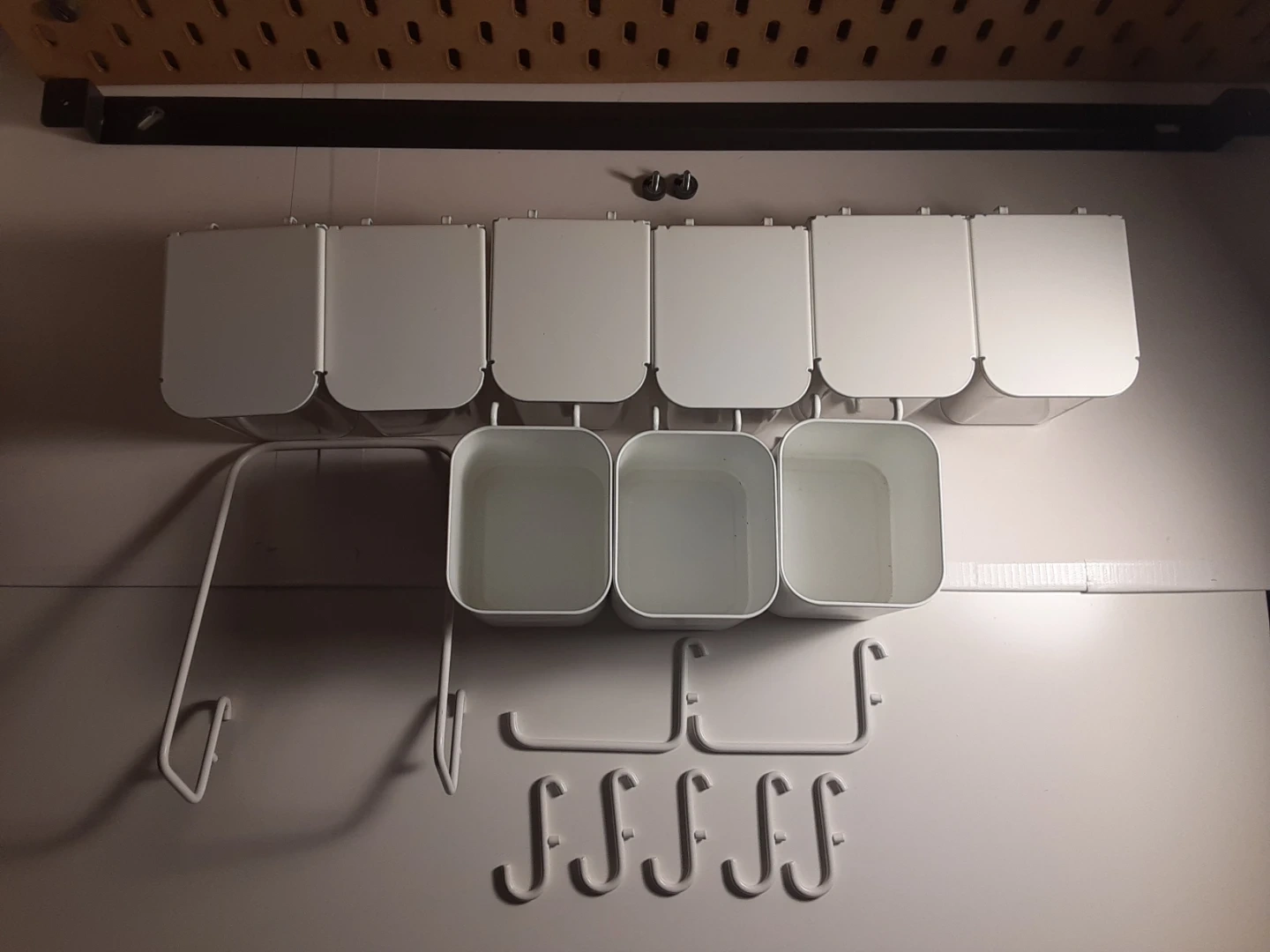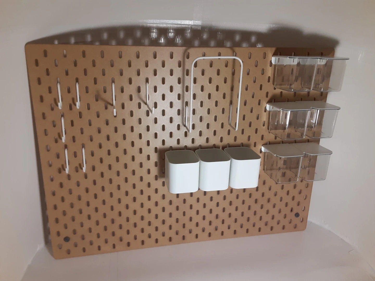 This is a wall-mounted pegboard organizer, in excellent shape(very minor damage from use) and great for the workshop or craft room storage. It includes various hooks, cups, and containers. See images for dimensions. I have gently used it for years and it has served me very well, I am sure it will serve you well aswell. Everything needed to mount is included, including screws and plugs(not imaged).