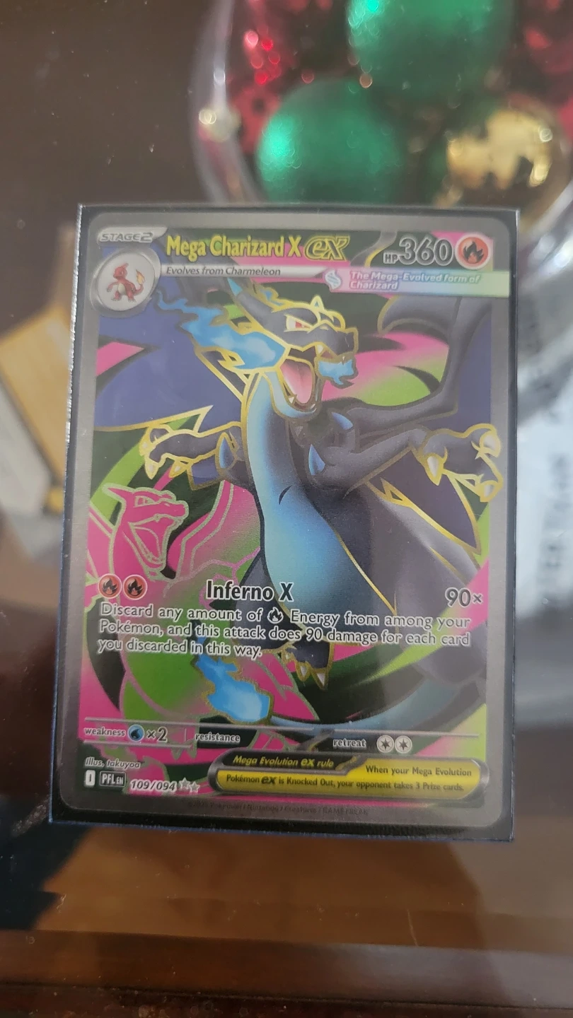This is a Mega Charizard X EX Pokémon card, number 109/094. Its Inferno X attack does 90x damage. It has a weakness of x2 and resistance.