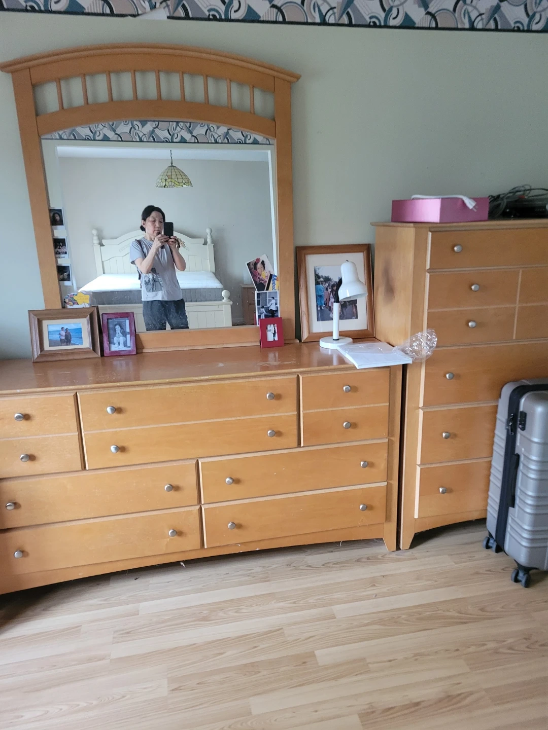 Wooden Dresser and Mirror Set