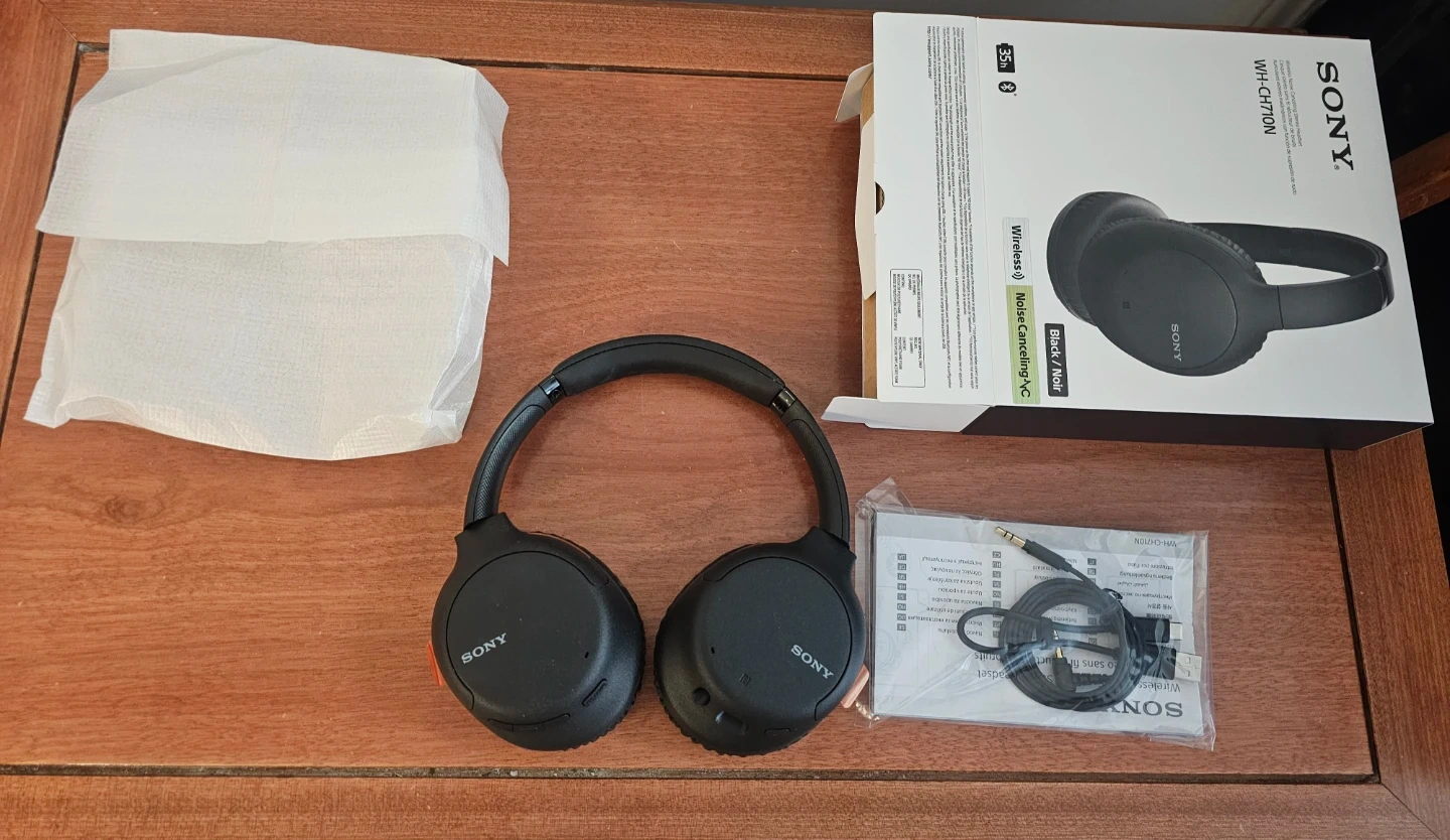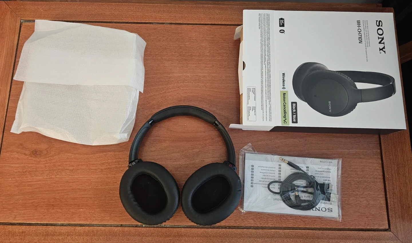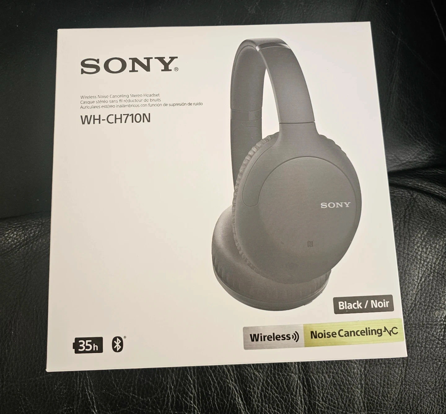 New and only opened for photo taking only.. Sony WH-CH710N wireless noise cancelling headphones in black. It's a black model with a 35-hour battery life. These headphones come with an audio cable and original packaging.