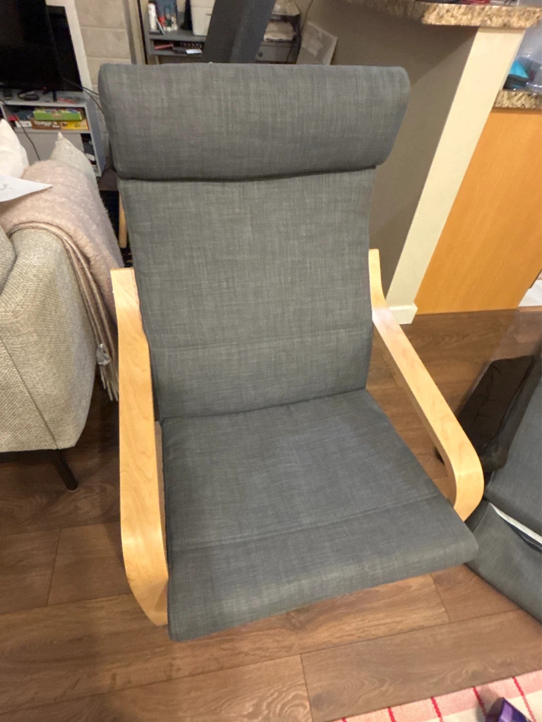 IKEA Poäng Chair with Grey Cushions