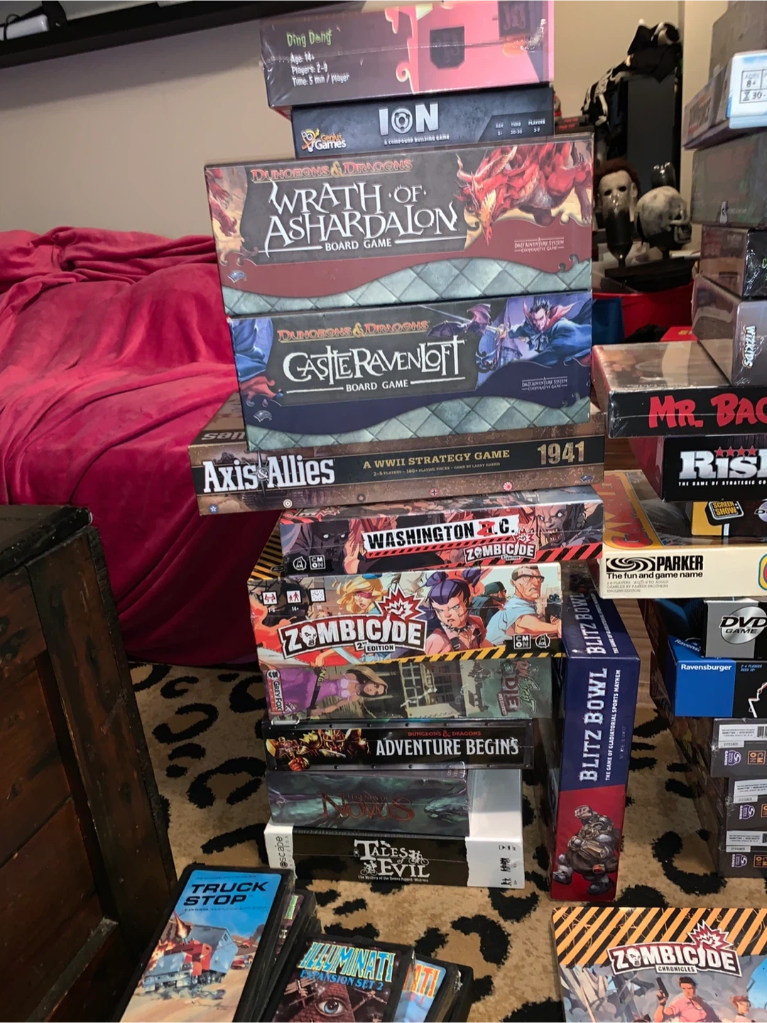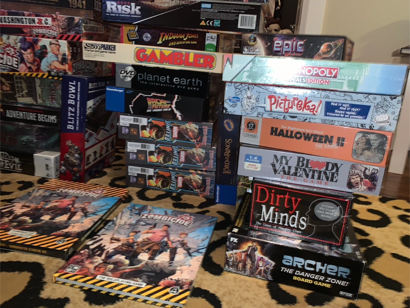 Bundle of various board games including Zombicide, Monopoly, Risk, and more. Perfect for game nights! Mostly includes original boxes and components.