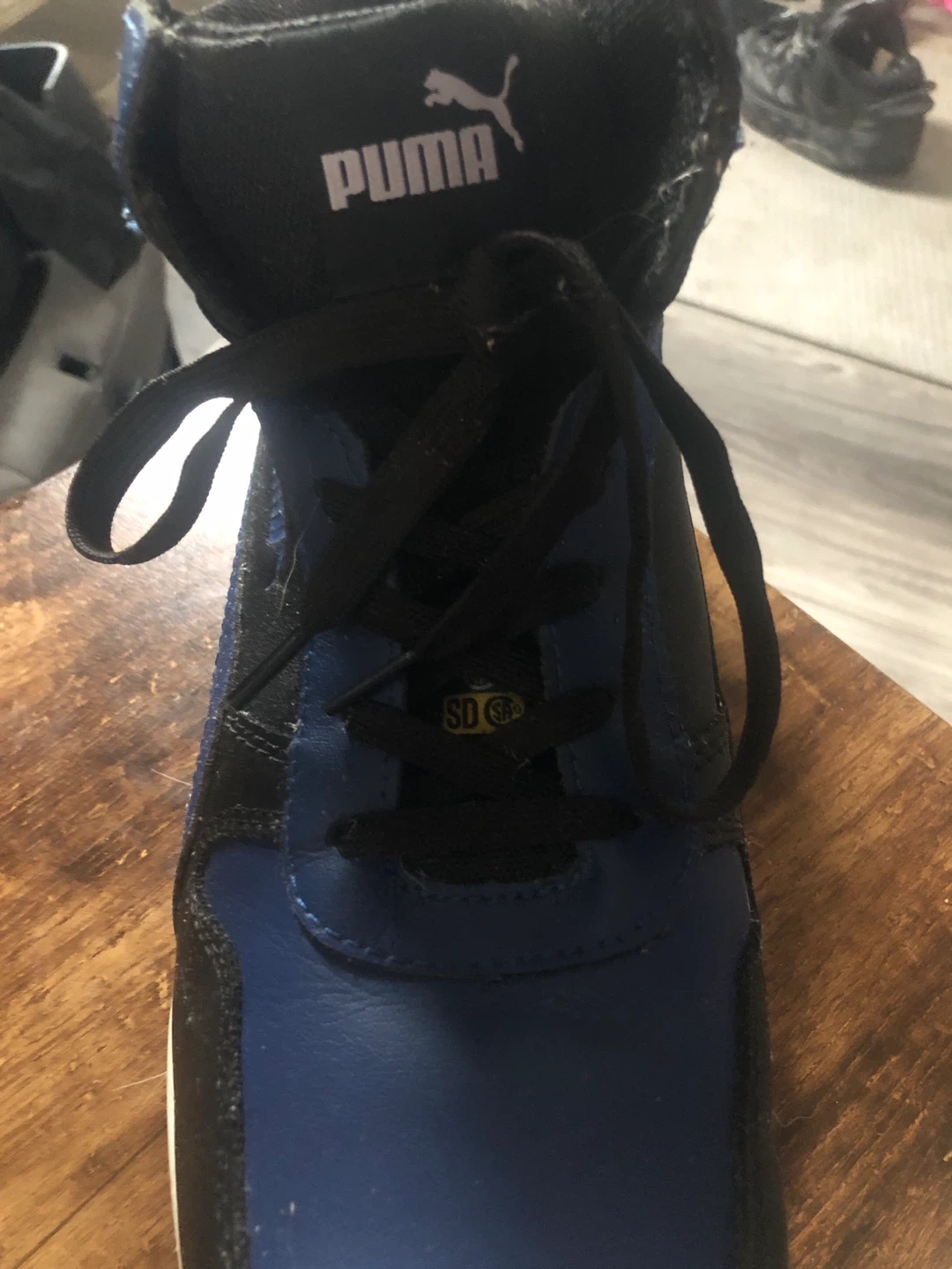 Puma work boots with a leather upper. These boots are safety toe rated CSA Z195-14 and ASTM F3445-21 SR. Size 10.5. Does need insoles worn 2 times